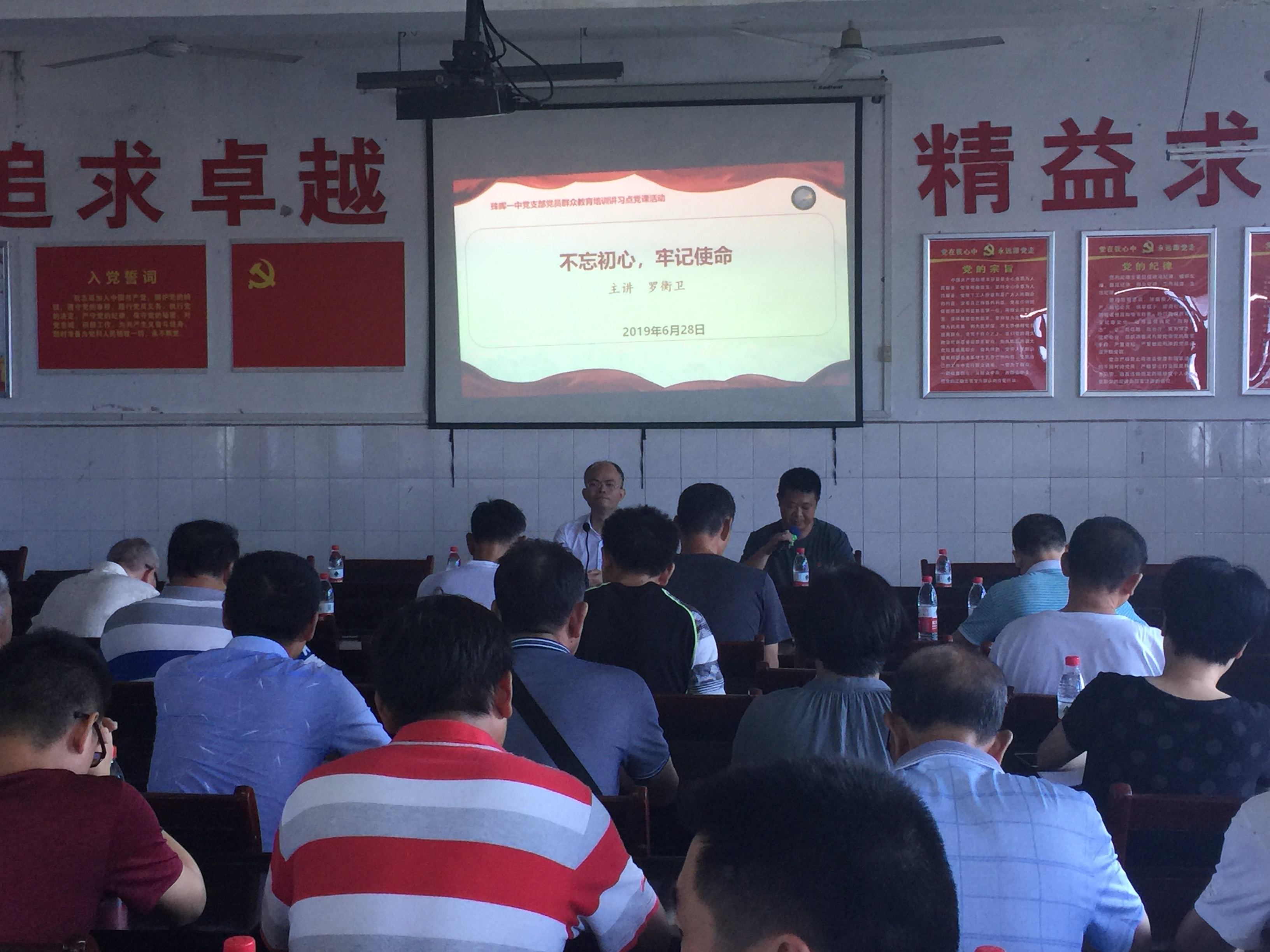 学校书记罗衡卫宣讲《不忘初心 牢记使命》唤起大家心中的责任感和使命感。学习《中国共产党党员教育管理条例》,要求党员三问:入党为什么?在党干什么?为党留什么?他深情并茂的讲述党员的英雄故事。本次党课带我们回顾历史,剖析当下,也展望未来,大家表示受益匪浅,要把革命精神永记在心,不断从中汲取信念的力量、奋斗的力量和创新的力量,不忘初心,脚踏实地,立足使命,敢于担当。(许凤姣)