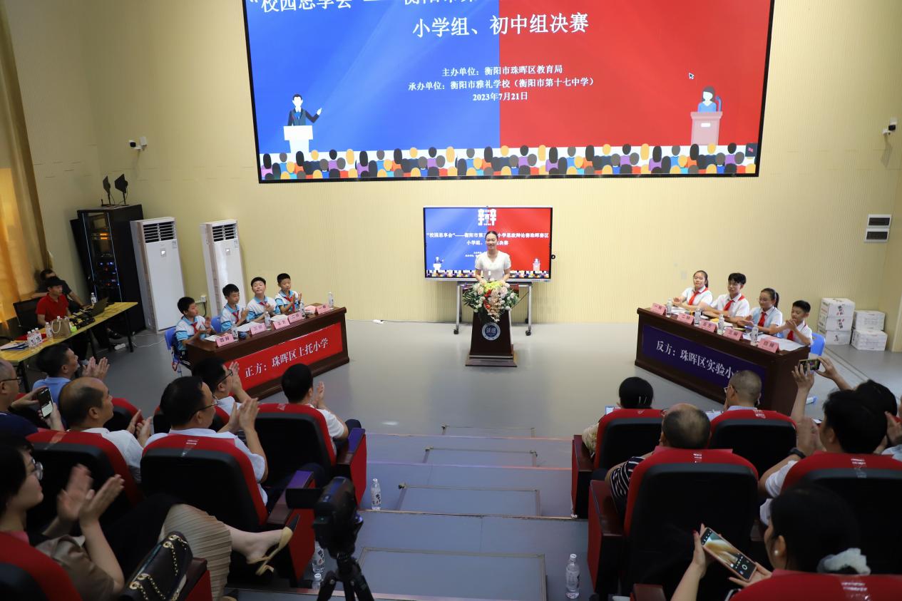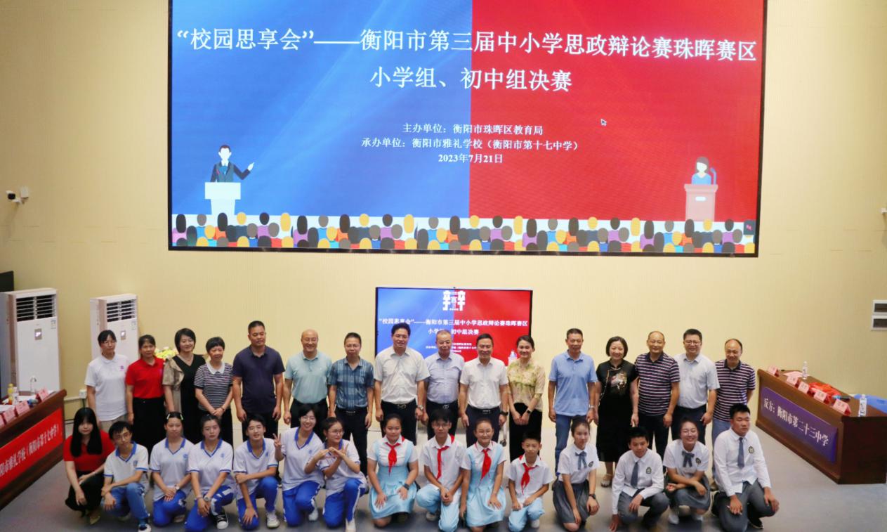 7月21日下午,衡阳市第三届大中小学思政辩论赛珠晖赛区小学组、初中组决赛在衡阳市雅礼学校(衡阳市第十七中学)隆重举行。