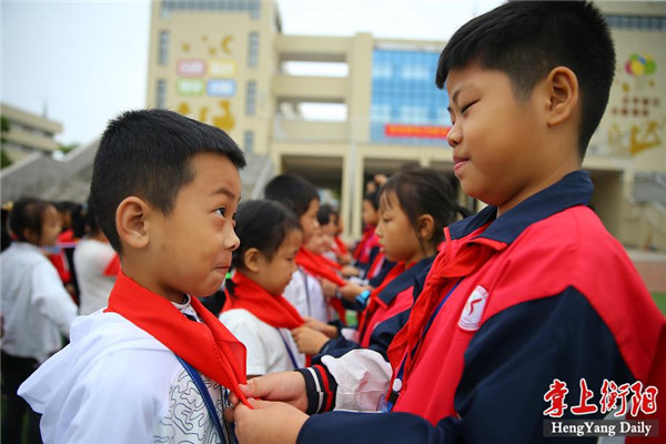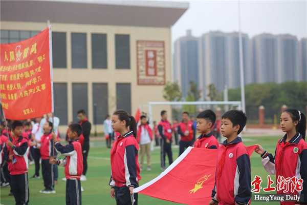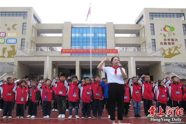 “我是中国少年先锋队队员,我在队旗下宣誓:我决心遵照中国共产党的教导,好好学习......”今日上午,珠晖区实小教育集团上托校区举行了“喜迎建队70周年,争做时代好少年”主题建队日活动。