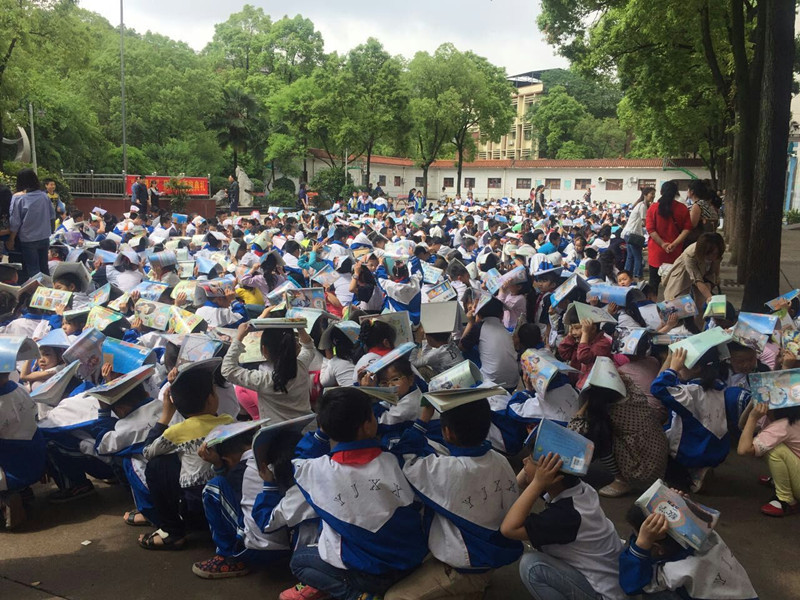 一切演练工作准备就绪,演练活动正式开始。5月15日早上10点整,第一声警报响起,一楼的学生在老师的指挥下头顶保护品直接跑出教室到操场避震,二楼及以上的学生就近避震,快速躲到桌下;几分钟后,第二次警报拉响,二楼及以上的学生在老师的带领下,按规定路线迅速有序地从教室撤离到操场集合。然后,各大队清点人数,向学校总指挥谢建伟校长报告,经核实,应撤人数与实际人数相符。接着,谢校长对本次活动做了小结,既肯定了本次活动取得的成绩,也指出了一些不足。最后,各班又按规定路线回到了教室。整个活动安全进行,紧张有序,有条不紊,圆满结束。