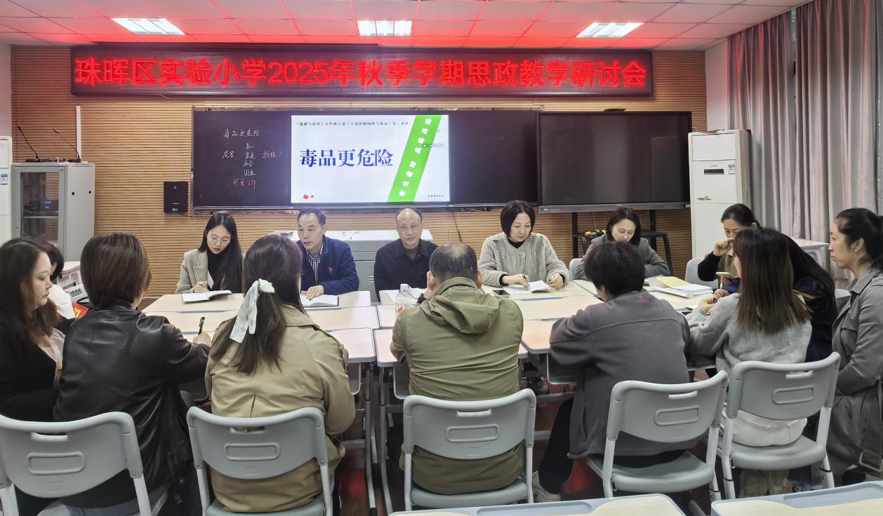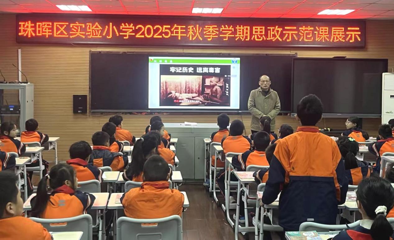 这堂示范课以小学生能理解的方式拆解"毒品危害",为日常禁毒教育提供了清晰思路。同时,大家一致认为,书记带头上思政课,不仅为全校思政老师提供了优质的教学范例,更彰显了学校对思政教育的高度重视。未来,珠晖区实验小学将持续加强思政教师队伍建设,创新教学方法,让思政课真正成为学生成长路上的"精神养分"。