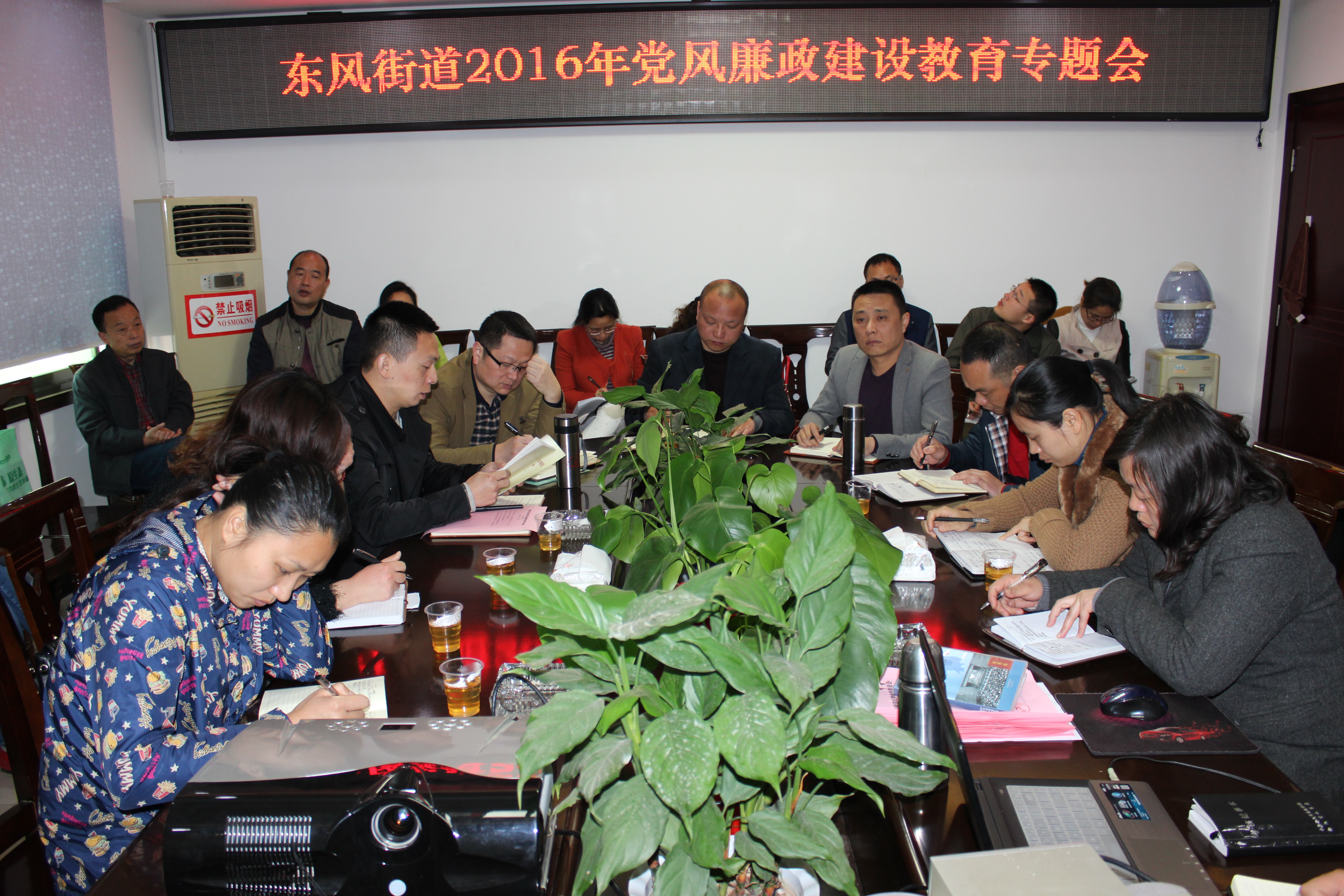 月28日,东风街道在四楼党委会议室召开2016年党风廉政建设教育专题会。会议由党委副书记、办事处主任陆健飞主持。
