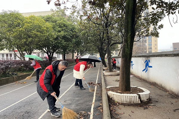在学校党支部书记、校长尹杰的带领下,全体党员志愿者身穿志愿服,手持扫帚、垃圾铲等工具,分组对校园内外的卫生死角进行全面清理。大家分工协作、劲头十足,重点清扫了走廊、操场、绿化带等区域,清除了积存垃圾、枯枝落叶。活动中,党员教师们不怕脏、不怕累,展现了良好的精神风貌。经过一个多小时的辛勤劳动,校园环境焕然一新。