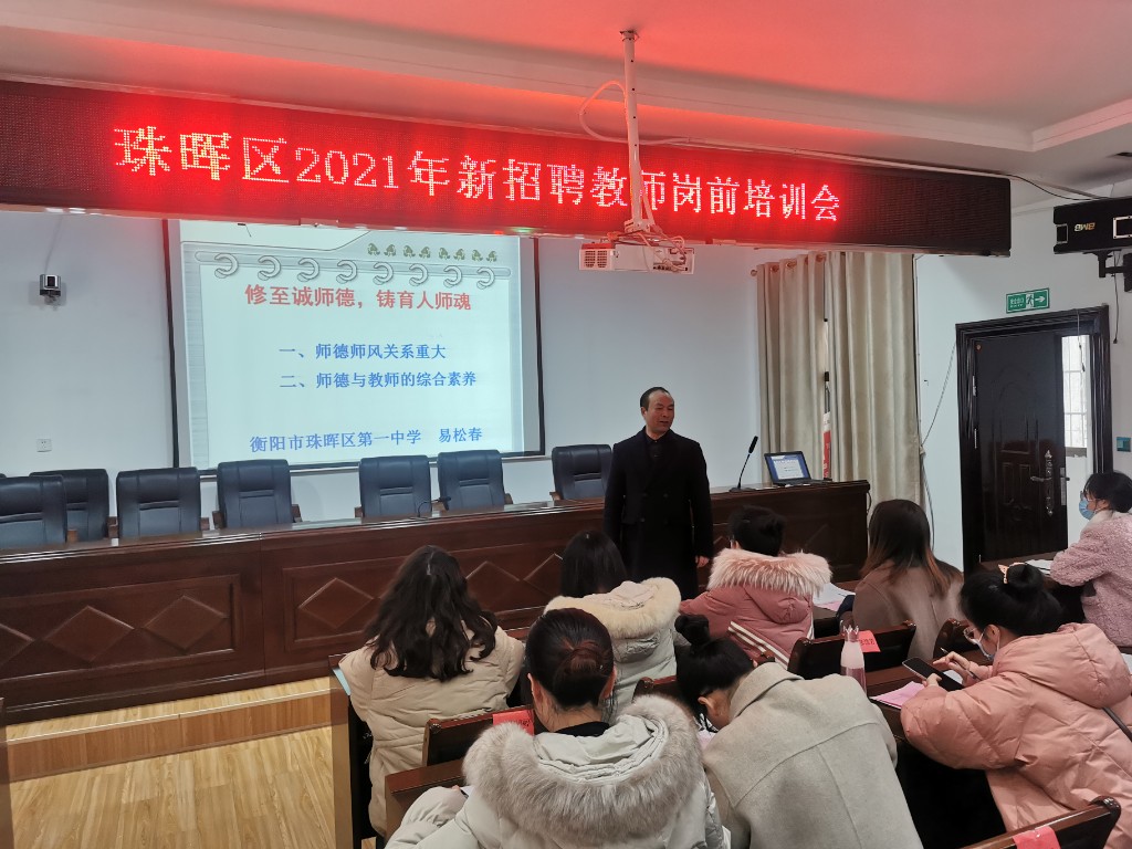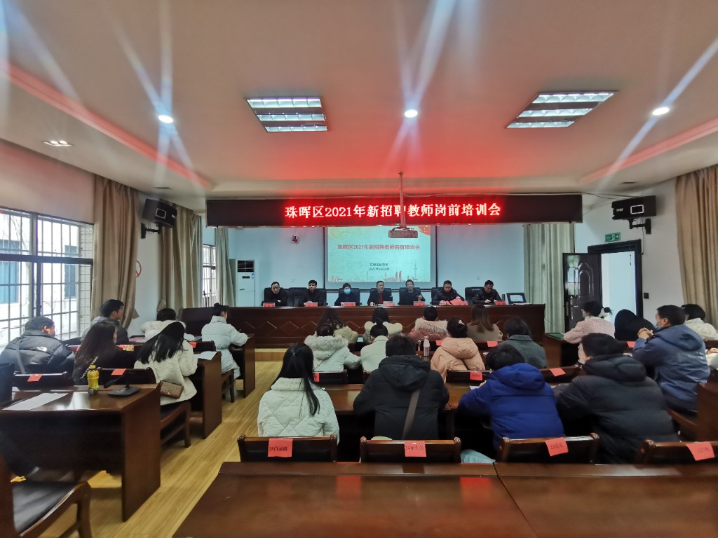 为促使我区2021年新招聘教师尽快做好角色转换,适应岗位需要,加强师德修养,快速成长为师德高尚、业务精良的教育教学能手,珠晖区教育局于2月14日下午在珠晖区青少年校外活动中心二楼会议室举办2021年新招聘教师岗前培训会,25名新教师参加培训。局班子成员参加开班仪式,局党组成员、副局长范翔主持会议。