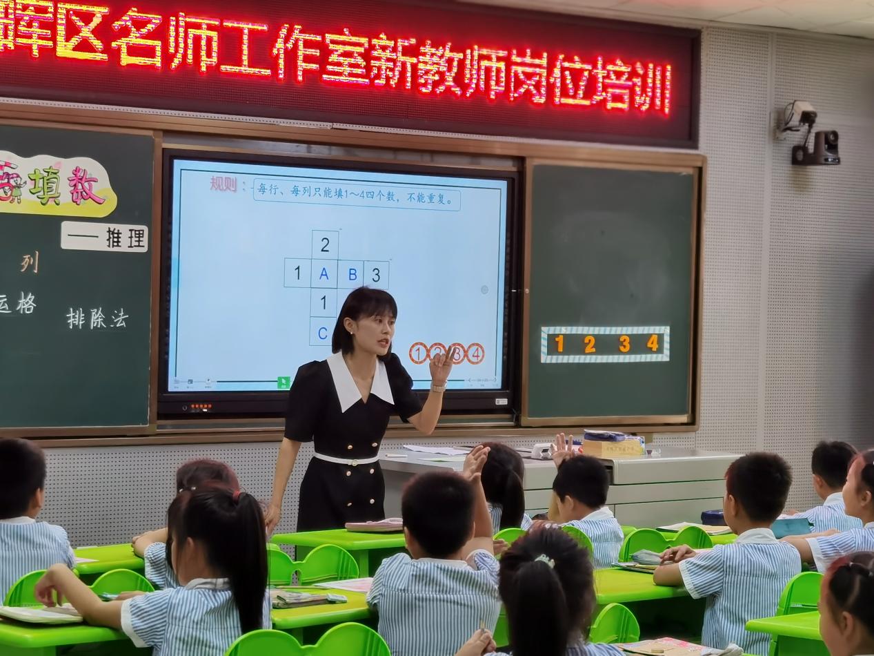 分学科培训环节,语文名师工作室的骨干教师彭龙菊、数学名师工作室的骨干教师曾雯姝、网球名师工作室的骨干教师廖童花分别为新教师展示了精彩的示范课,刘晖、张擎旗、龙平三位首席名师分别对三堂本学科的示范课进行点评,并进行专题讲座,引领参培教师一起探究课堂教学的技巧。