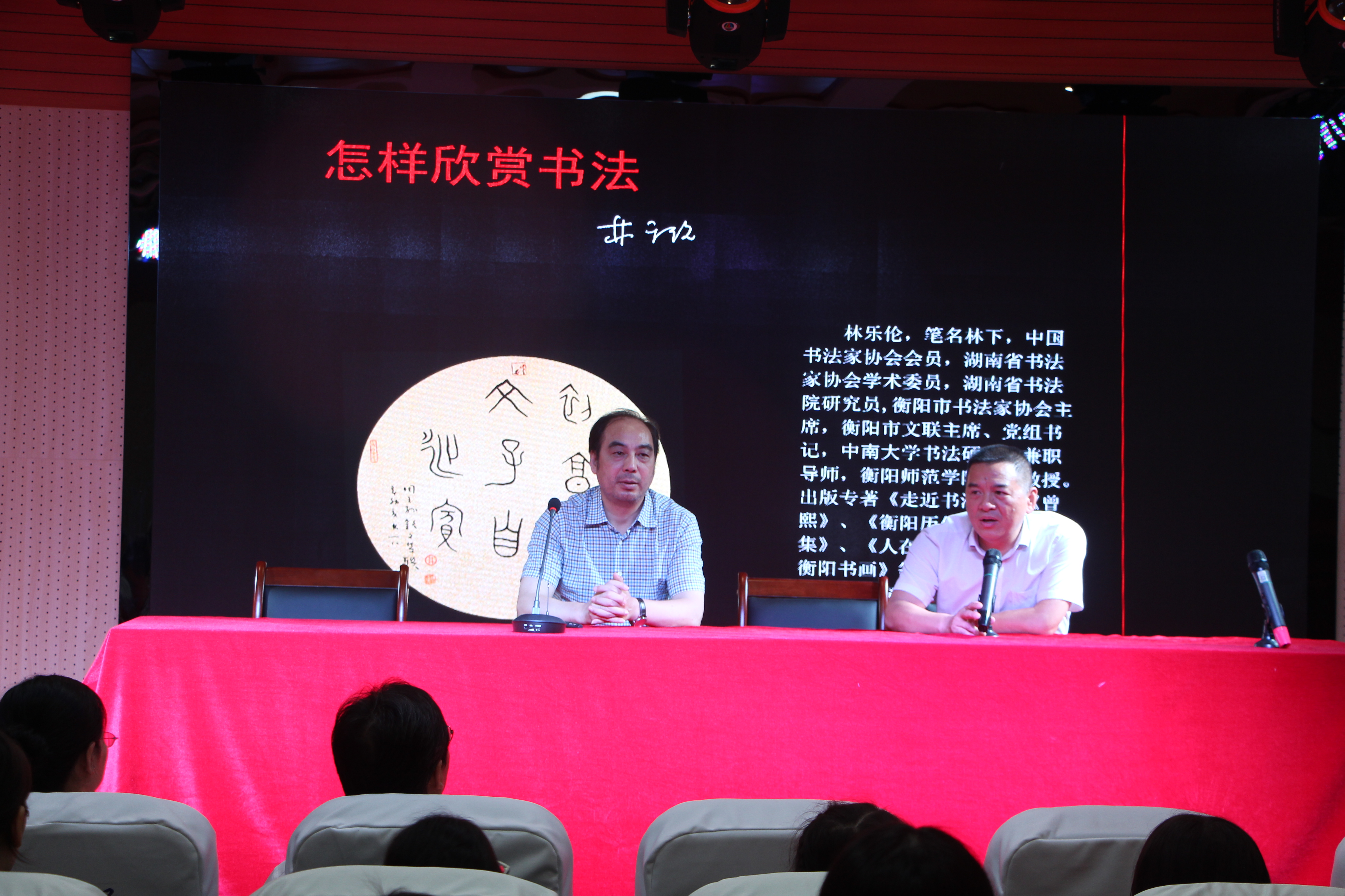 为全面贯彻落实好《教育部关于中小学开展书法教育的意见》,5月31日下午,珠晖区教文体局邀请衡阳市书法家协会主席、衡阳市文联主席、党组书记林乐伦来到区苗圃小学进行《怎样欣赏书法》专题讲座。珠晖区人大常委会主任、党组书记黄常耿,区委常委、宣传部长段志阳,区委常委、纪委书记、监委主任殷亮出席活动。