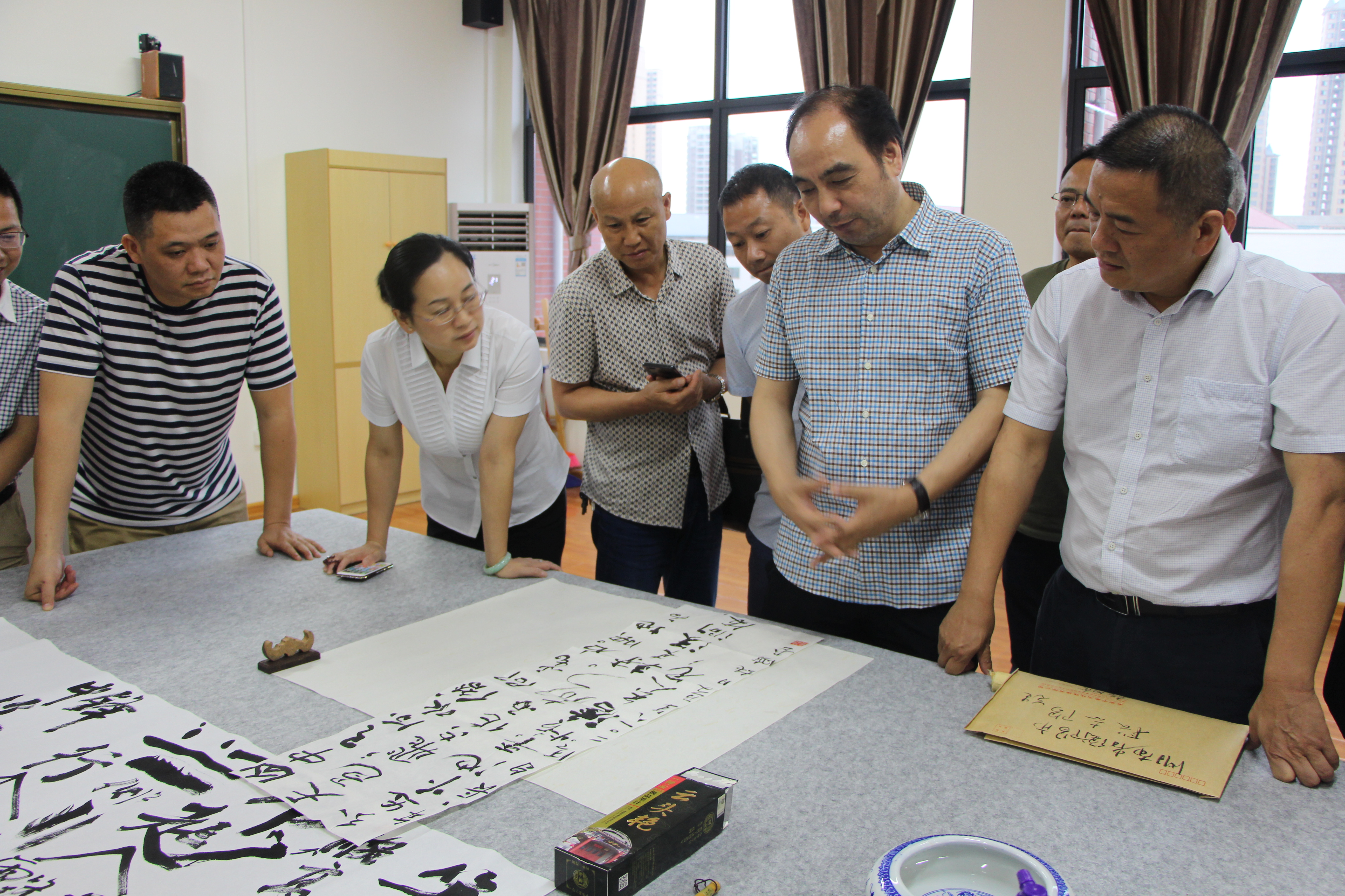 会后,林乐伦与中国书法家协会会员李浩文现场挥毫泼墨,与珠晖区各位书法爱好者就执笔、行笔以及中小学如何深入开展书法教育进行了探讨。