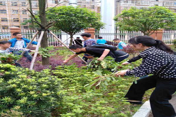 许多学生与教师在党员们的模范带动下,踊跃参与到劳动中来,干劲十足,热情高涨,校园内一派热火朝天的劳动场面。整个劳动持续了一个多小时,在大家的齐心协力下,校园花坛内的垃圾、杂草全部清除干净,面貌焕然一新。