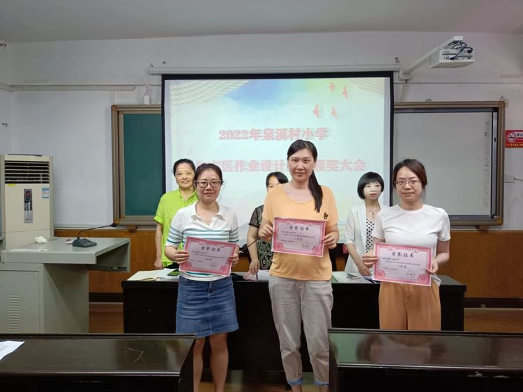 “双减”政策大背景下,“减轻学生过重的课业负担”成为教育教学改革的重要内容。五育如何落实,作业如何更高效,成了泉溪村小学老师们深入研究的内容。为了提高作业设计的质量,减轻学生的作业负担,提高教师业务能力,促进教师专业化水平,我校积极参与了珠晖区教师作业设计大赛活动,其中语文、数学、美术、道德与法治、科学五个团队荣获一等奖,英语团队荣获二等奖。6月27日下午,学校在多媒体教室举行了盛大的颁奖大会。