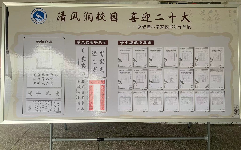 为扎实有效的推进清廉学校建设,增强廉文化的教育、示范、熏陶和导向作用,形成"以廉为荣"的良好风气,以清风正气迎接党的二十大胜利召开,玄碧塘小学71进行了"清风润校园 喜迎二十大"家校法作品展。