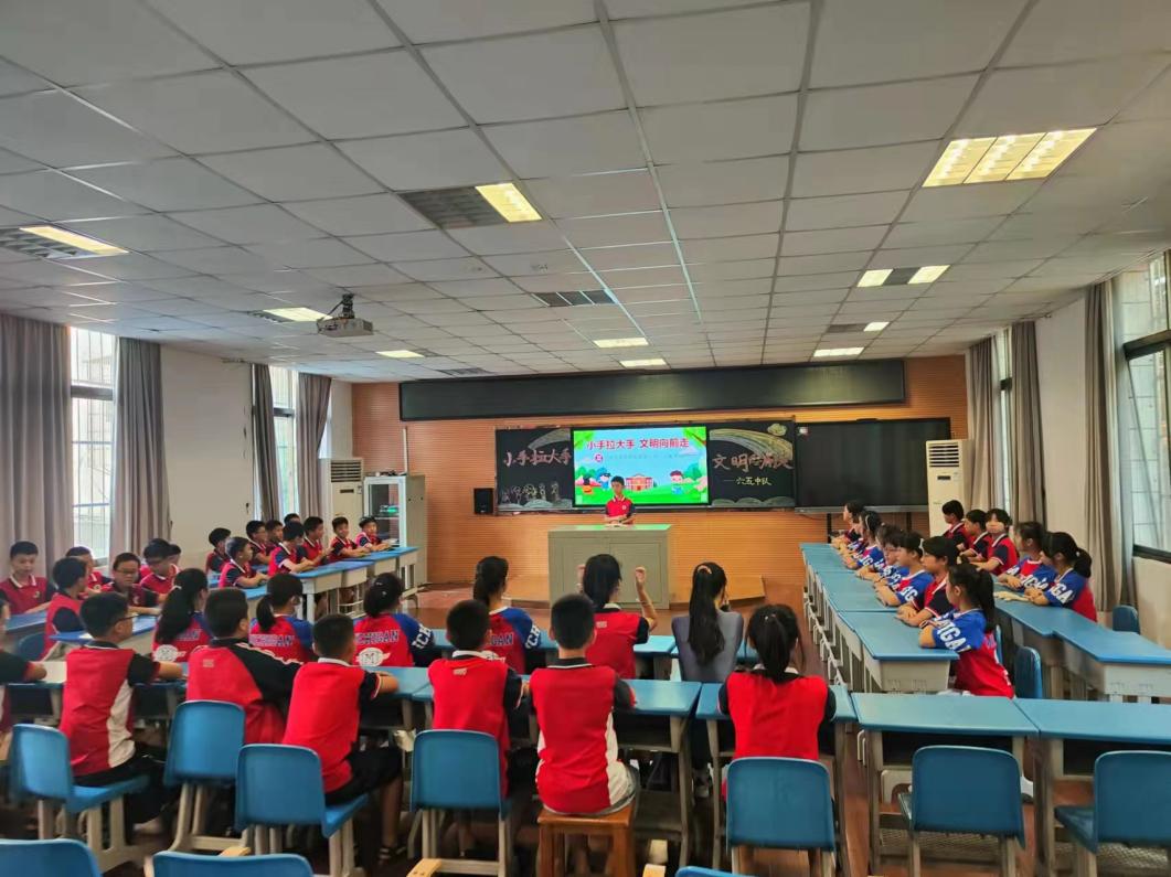 新学期开始,珠晖区实验小学就开展了一系列弘扬社会主义核心价值观的活动。通过参与问卷调查、背诵社会主义核心价值观接龙、文明创建班队会、家长志愿者文明值岗等多种形式了解社会主义核心价值观的深刻内涵,激发全校师生践行社会主义核心价值观的内在动力。