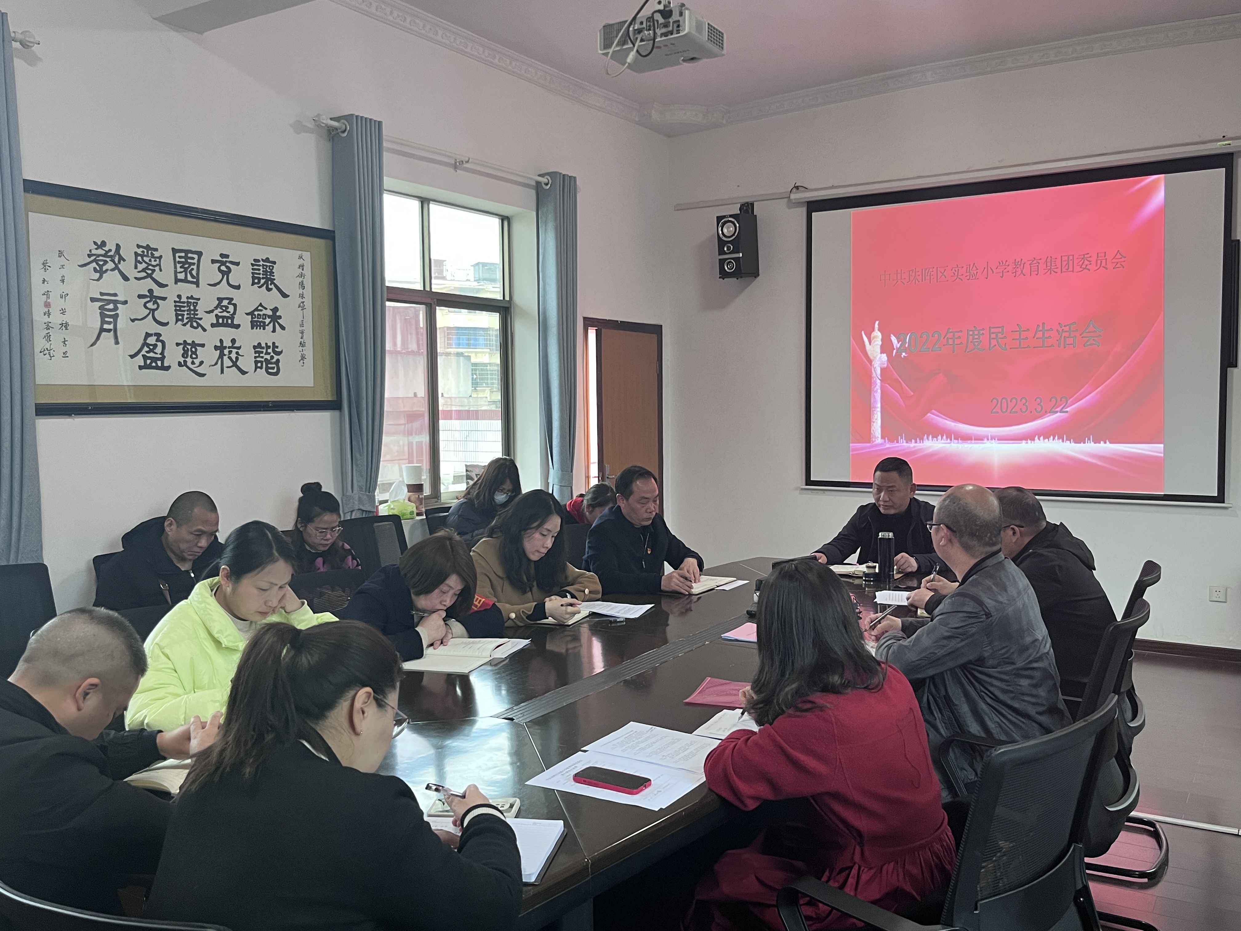 2023年3月22日上午,珠晖区实验小学教育集团党委召开2022年度领导班子民主生活会。珠晖区教育局党组书记、局长罗广慧莅临会议点评,集团校党委书记主持会议,党委班子成员及党员、教师部分代表参加了会议。