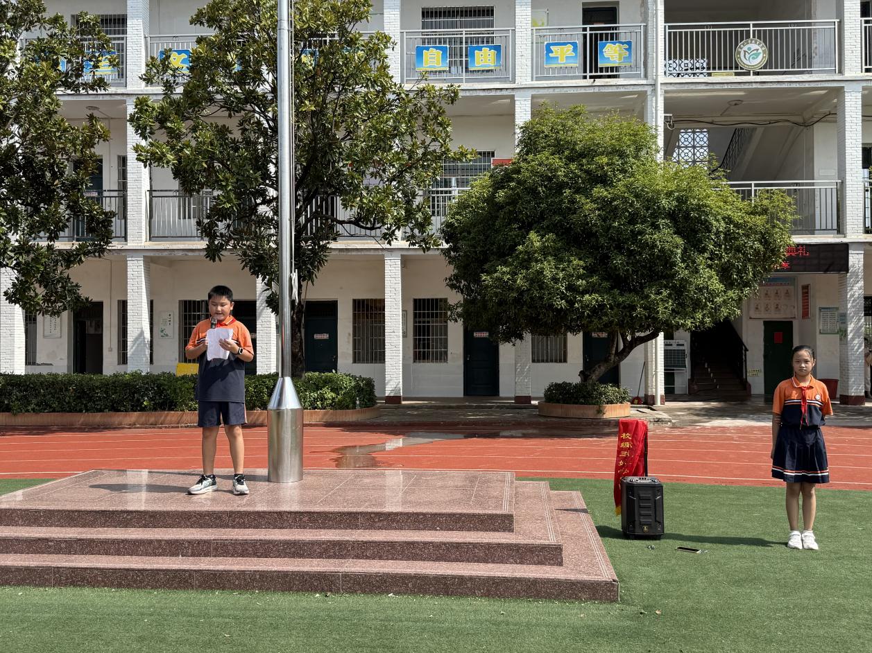 最后,专职副书记朱江燕同志发表了以"在阅兵中汲取力量,在新学期扬帆起航"为主题的讲话。她希望同学们铭记苦难辉煌,传承抗战精神,珍爱当下和平生活,勇担时代使命,从历史中汲取精神力量,努力成长为新时代好少年。