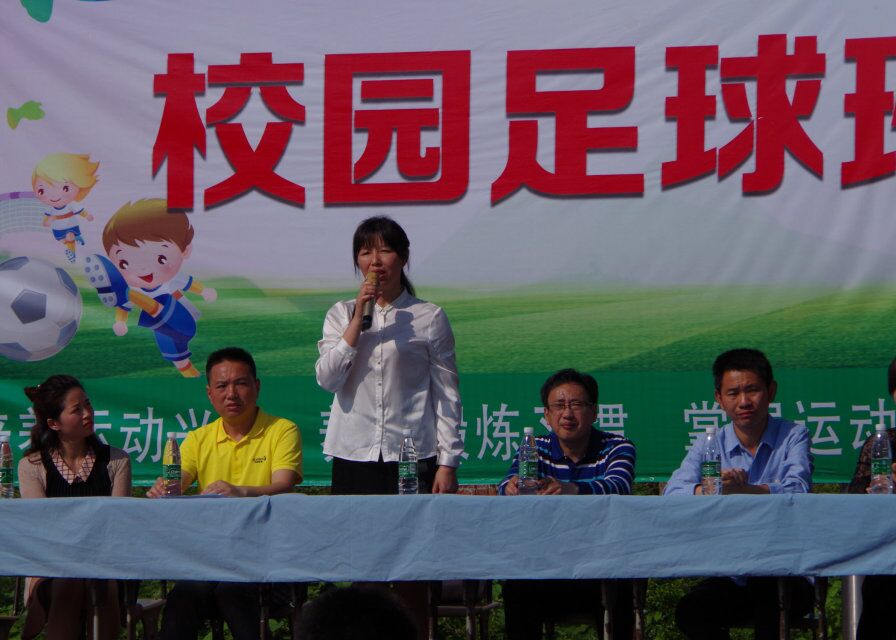 开幕式上,区教文体局副局长欧阳小泉和新华实验小学校长谭俊旻分别为本次活动致词。接着裁判员赵进昇、运动员杨建欣分别代表裁判员和运动员宣誓。之后学校四、五、六年级的三百余名学生进行了校园足球操表演。灿烂的阳光下,黑白相间的足球随着热情奔放的音乐在孩子们的头顶、手中、腰间、脚下快乐地跳跃着。激情四射的校园足球操结束后,副局长欧阳小泉宣布新华实验小学第二届“新华杯”校园足球班级联赛开赛。