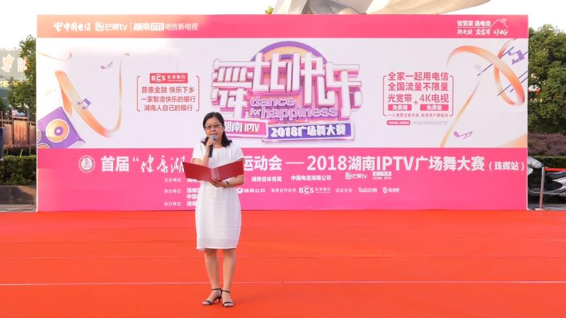 7月14日晚上,正值流金铄石的盛夏时节,首届“健康湖南”全民运动会珠晖区广场舞海选赛在美丽整洁的衡阳火车站广场火热开启,珠晖区教文体局党委书记、局长谢志军致辞,珠晖区政府副区长江莉宣布比赛开始。