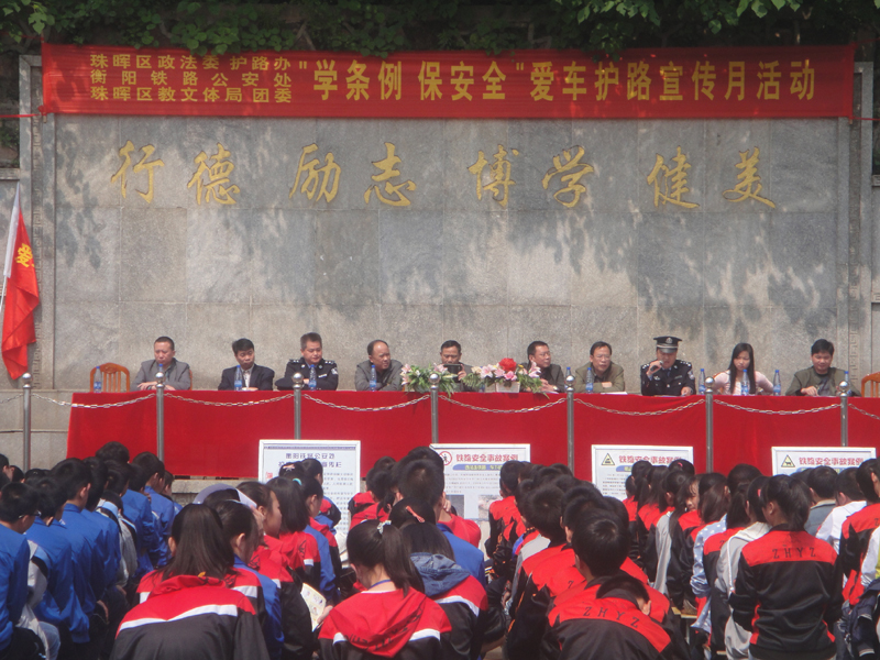 此次活动由珠晖区护路办牵头,衡阳铁路公安处、车务段,珠晖区教文体局、团委联合举办,珠晖区第一中学全体师生近1000人参加了活动。活动得到了衡阳市护路办的大力支持,市委政法委副书记孙团才亲临活动现场,并作重要讲话。