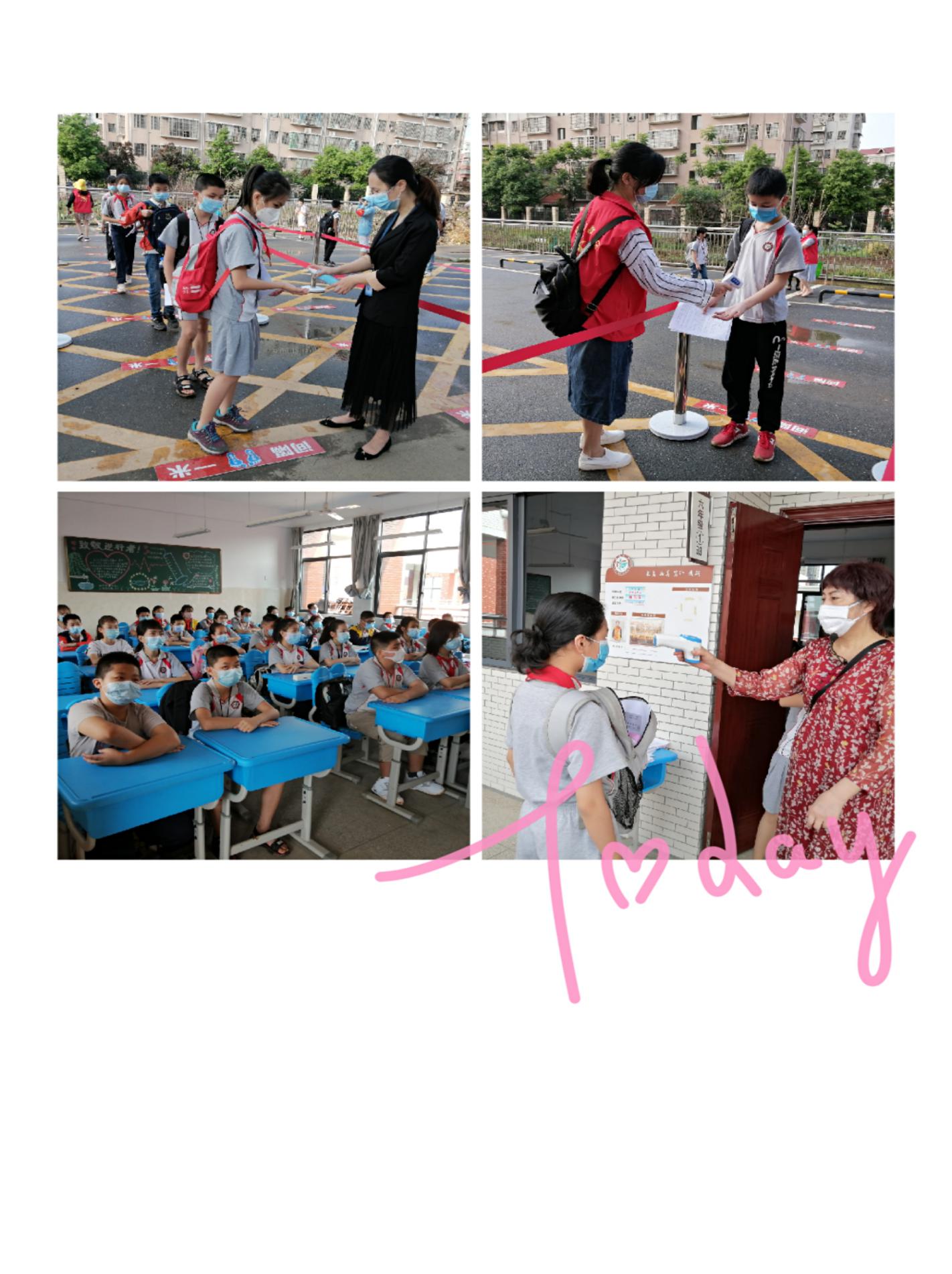 "请保持戴口罩!""请露出一点手腕测温。"教室门口,各班的班主任再次给孩子们测量体温,依次进入教室。宽敞明亮的教室里,老师利用周末时间早就对学生的课桌椅清洗杀菌、摆放整齐,新课本整齐地摆放在了每个孩子的课桌上。间隔距离,依次坐好,孩子们就算戴着口罩,也难以掩盖住笑眼弯弯的兴奋。周群校长说:"今天的开学工作进行得既顺利又圆满。这得力于和全体教师、珠晖区城管和平乡卫生院携手相助,为师生平安开学保驾护航。"