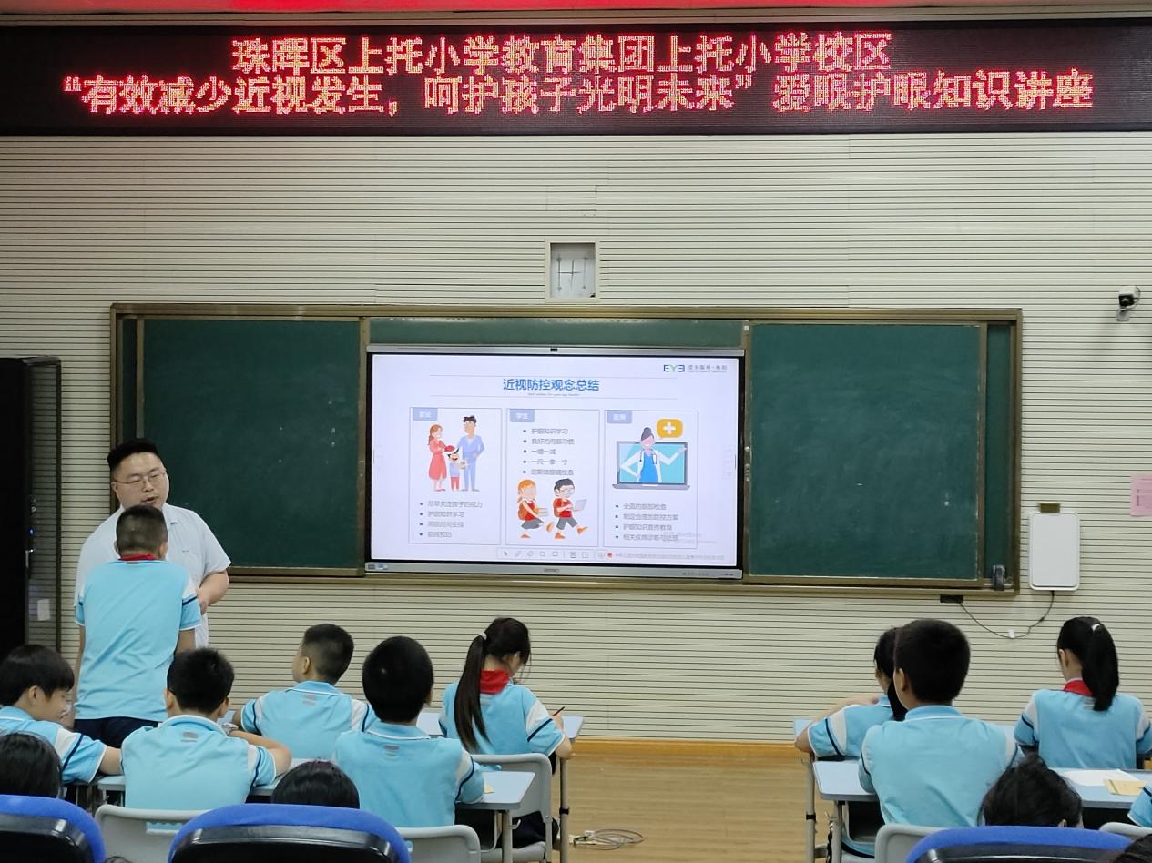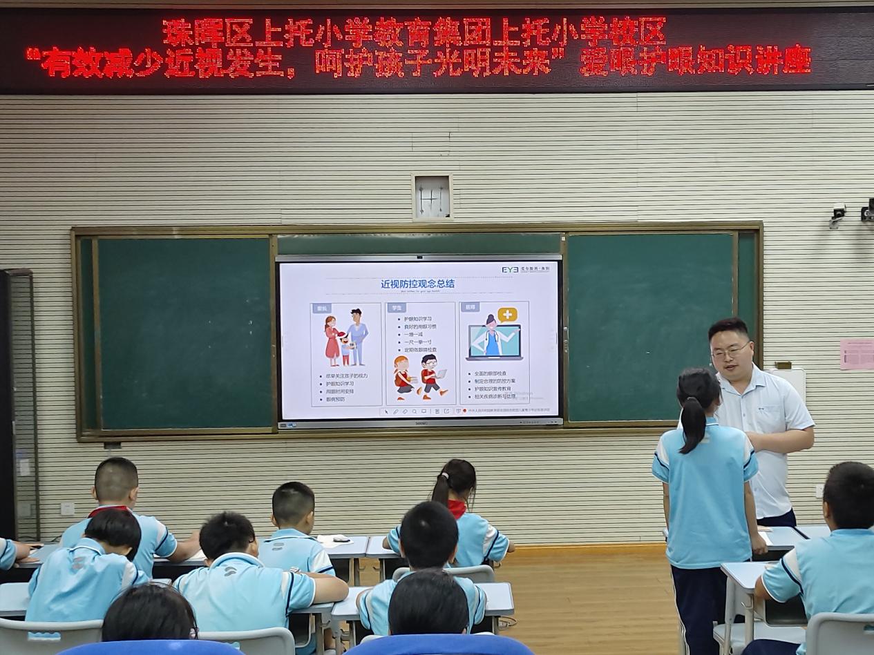 为强化学生爱眼护眼的意识,9月20日下午,衡阳市珠晖区上托小学教育集团上托小学校区携手衡阳爱尔眼科医院,举行以"有效减少近视发生,呵护孩子光明未来"第9个近视防控宣传教育月活动为主题的公益讲座。