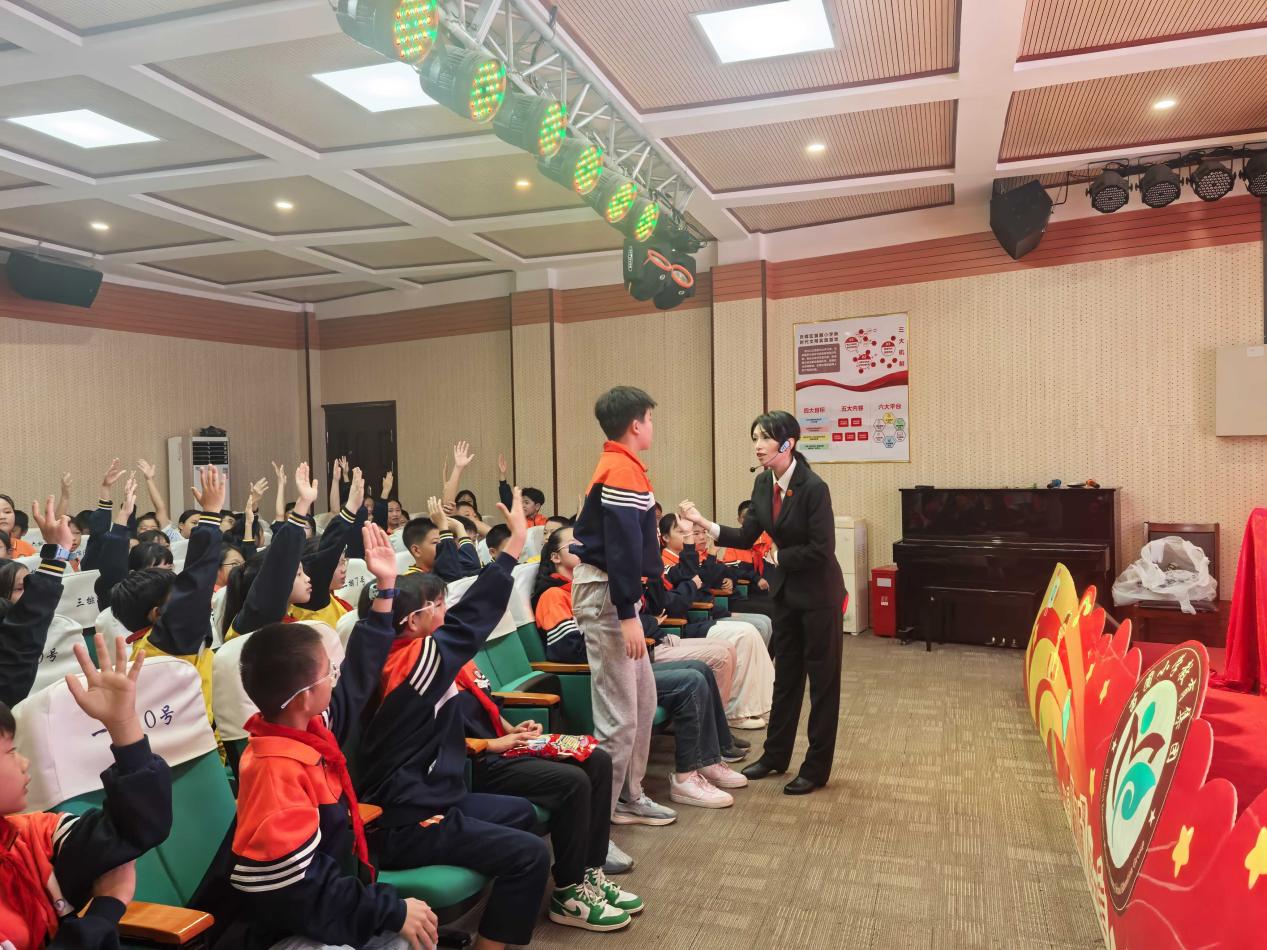 为激发学生对法律知识兴趣,工作人员设计互动答题环节,孩子们踊跃参与,寓教于乐,加深对校园欺凌知识理解,播下尊法、学法、守法、用法种子。
