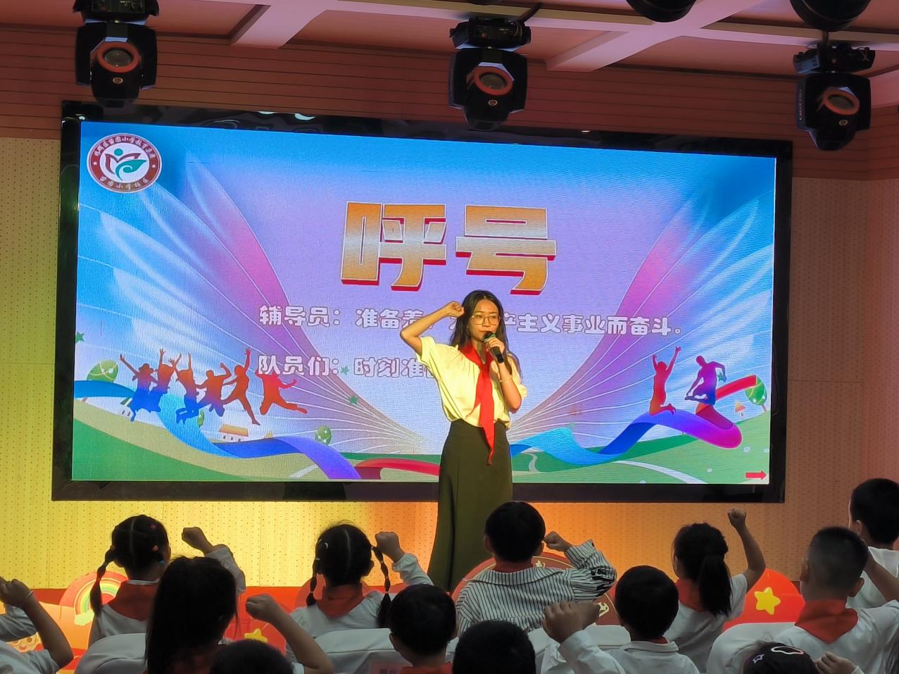 在全体师生的见证下,新队员们高举右拳,庄严宣誓,响亮的誓言回荡在校园;随后的大队辅导员带领少先队员们呼号,"时刻准备着!"的回应铿锵有力,展现出新时代少年的昂扬风貌。