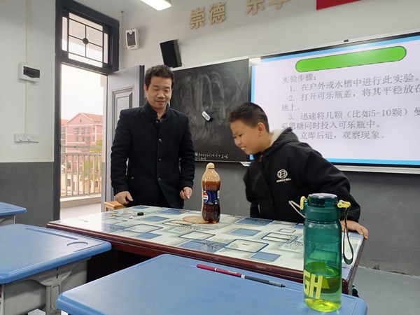 当可乐遇上薄荷糖!珠晖区茶山坳镇中心学校开展“神奇的可乐喷泉”科学实验活动