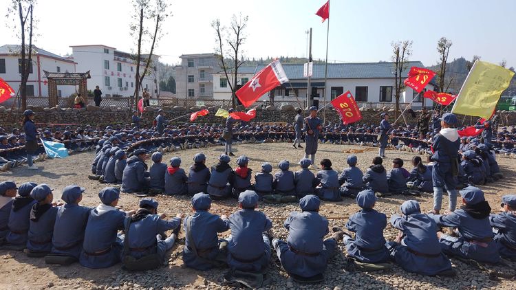 早上7时,学校绿茵场上,彩旗飘飘,同学们精神饱满,整装待发。在简短而隆重的开营仪式上,校长徐剑锋对研学活动的目的、意义、纪律等方面作了动员讲话。他希望同学们通过研学活动拓展视野、丰富知识,加深与自然与文化的亲近感,有效提升团队意识和集体观念,培养同学们的自理能力、实践能力。经过近三个小时的车程,全体师生安全抵达井冈山市龙市镇马源村研学基地。马源村属于革命老区,地处大山深处。在国家实施扶贫政策之后,该村百姓抓住机遇,发扬井冈山革命精神,大力发展旅游产业,村容村貌焕然一新。成了闻名遐迩的乡村旅游目的地,也吸引了众多的研学团队。吃完中餐,畅游研学公司的教官率领同学们又马不停蹄地赶往井冈山革命博物馆及井冈山革命烈士陵园进行参观学习,敬献花圈,凭吊先烈。在烈士陵园,工作人员饱含深情地向同学们详解了红军的故事,加深了同学们对那段历史的理解。参观凭吊活动结束后,同学们回到马源村。一场别开生面的篝火晚会点燃了大家的激情。