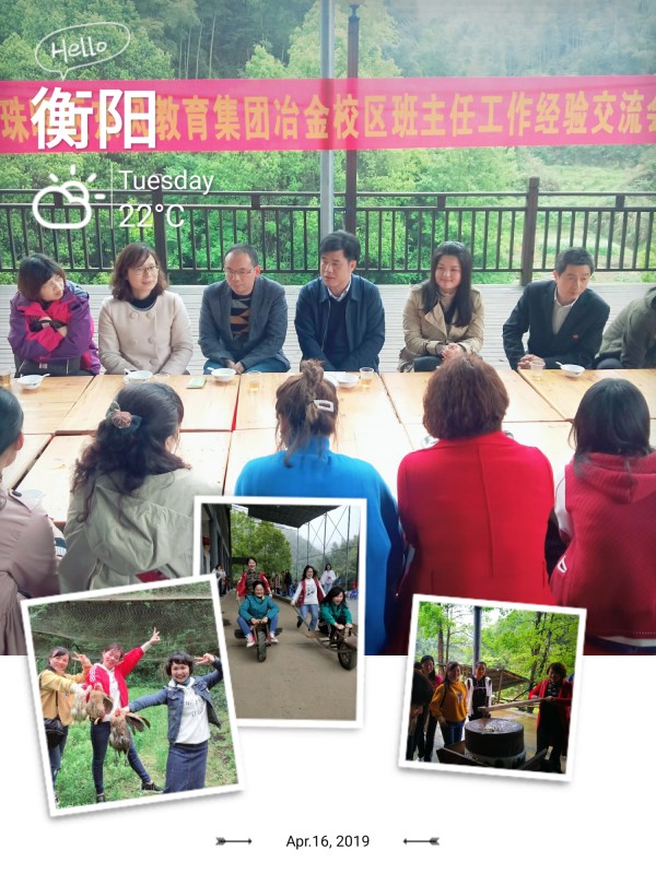 班主任是学校教育的具体组织者、实施者,教学工作的协调者,更是班集体的培育者。为了有效地探索班主任工作经验,创新班级管理的新方法新思路,提高班主任队伍的整体素质, 4 月 13 日,在东风教育集团冶金校区政教室的精心策划组织下,该校在衡阳县樟木乡的西林农场,成功召开了一次特别的班主任工作经验交流会。东风教育集团总校长谢建伟、总支部书记赵庆梅、冶金校区执行校长王勇等学校领导和全体班主任老师参加了会议,会议由冶金校区副校长姚健主持。