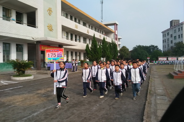 首先是入场式。六个班级排着整齐的队伍,迈着整齐的步伐,喊着响亮的口号,雄纠纠气昂昂地走过主席台,接受全体师生的检阅。