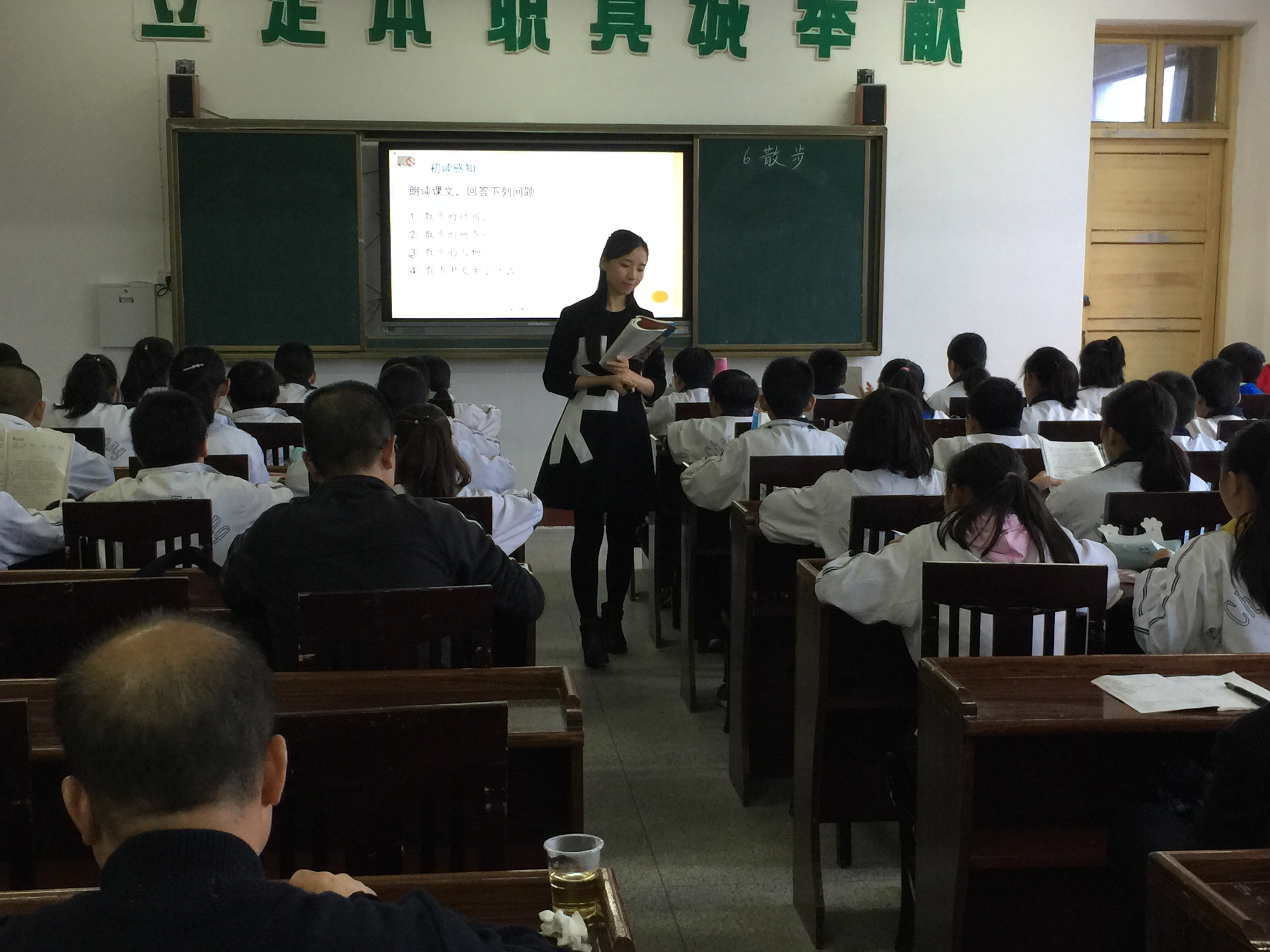 本次活动首先由英法实验学校陈倩执教七年级《散步》一课。陈倩老师自然而富于亲和力的教态,扎实的语文功底给在场的评委留下深刻印象。接下来四堂为说课,分别为英发学校王重虎《春》、珠晖一中许凤姣《背影》、英发学校罗磊《诫子书》、珠晖一中唐文娟《作文指导》,四位老师采用PPT现场说课。紧接着珠晖一中、珠晖二中、酃湖中学教师代表现场评课,教研室的乐欣主任高屋建瓴地对老师的上课和说课精准的点评,并要求参赛教师反复研读新课标要求、钻研教材和考点、分析学生实际学情,打磨说课稿和课件.