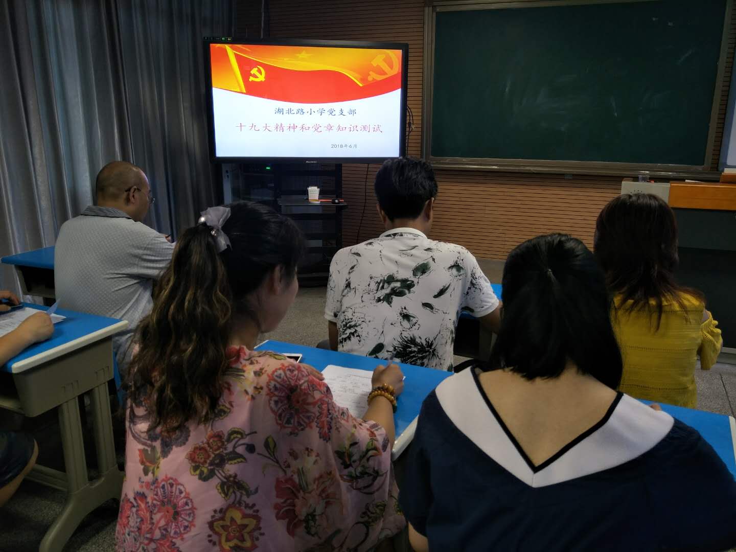 为深入学习宣传贯彻党的十九大精神,进一步督促全体党员真正做到学懂、学深、学透党的十九大精神及党章党规内容。6月26日下午,湖北路小学党支部组织全体党员开展了十九大精神和党章知识测试活动。