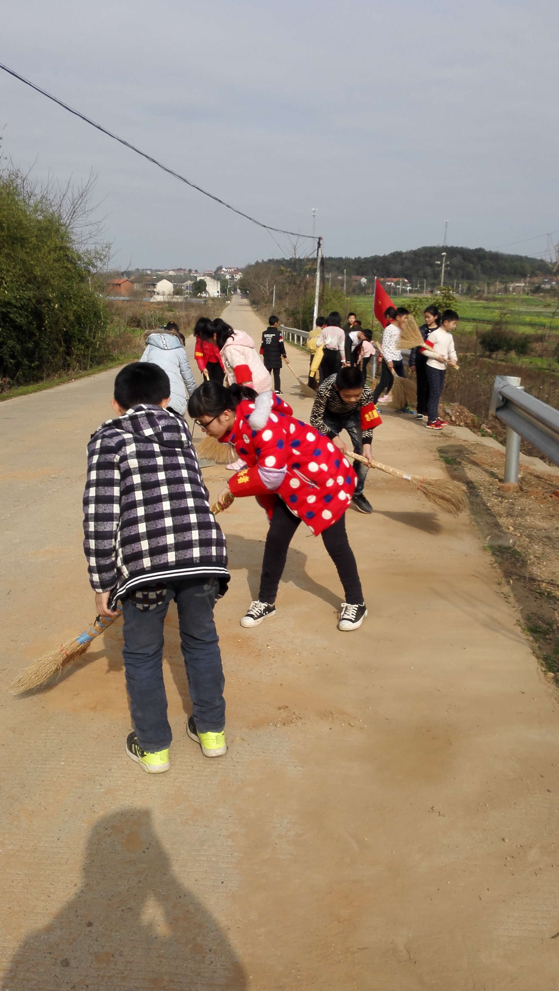 2月28日下午,春暖花开,阳光明媚,高年级班主任及任课老师高举少先队队旗,师生佩戴好学雷锋志愿者袖章,拿着扫帚等工具一起来到了乡村旅游景点花海至学校路段,兴致勃勃热热闹闹认认真真地为道路清理洒落的碎石和泥沙。这段时间,由于此路段运沙车活动频繁,造成道路路面掉落了很多碎石和沙子,对交通出行带来不便,汽车驶过致使沙石飞溅,尘土飞扬。不仅给路人及上下学的同学带来一定的安全隐患,还使空气混浊,环境受到一定污染。高年级组师生学雷锋清扫道路实践活动,不仅让道路变得干净通畅,给群众做了爱路护路的榜样,也着实为出行经过此段道路的学生、行人、司机朋友消除了安全隐患,过路司机在车窗内向我们竖起了大拇指。