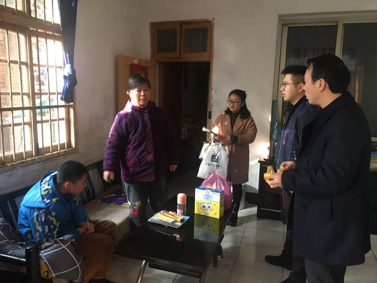 胡天承自幼患有自闭症,有时生气了就乱砸东西。为了高昂的治疗费,父母都出去工作只有外婆一人在家照顾。外婆见到老师们非常高兴,她感激地说:“老师到家里来免费教孩子,不仅让孩子学到很多东西,我还能学学怎么教孩子。”