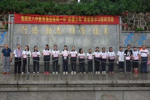 2017年6月30日下午,珠晖一中“美德少年”表彰暨学习榜样活动在学校篮球场举行,贺芊等十四名同学被授予“珠晖一中“美德少年”荣誉称号。