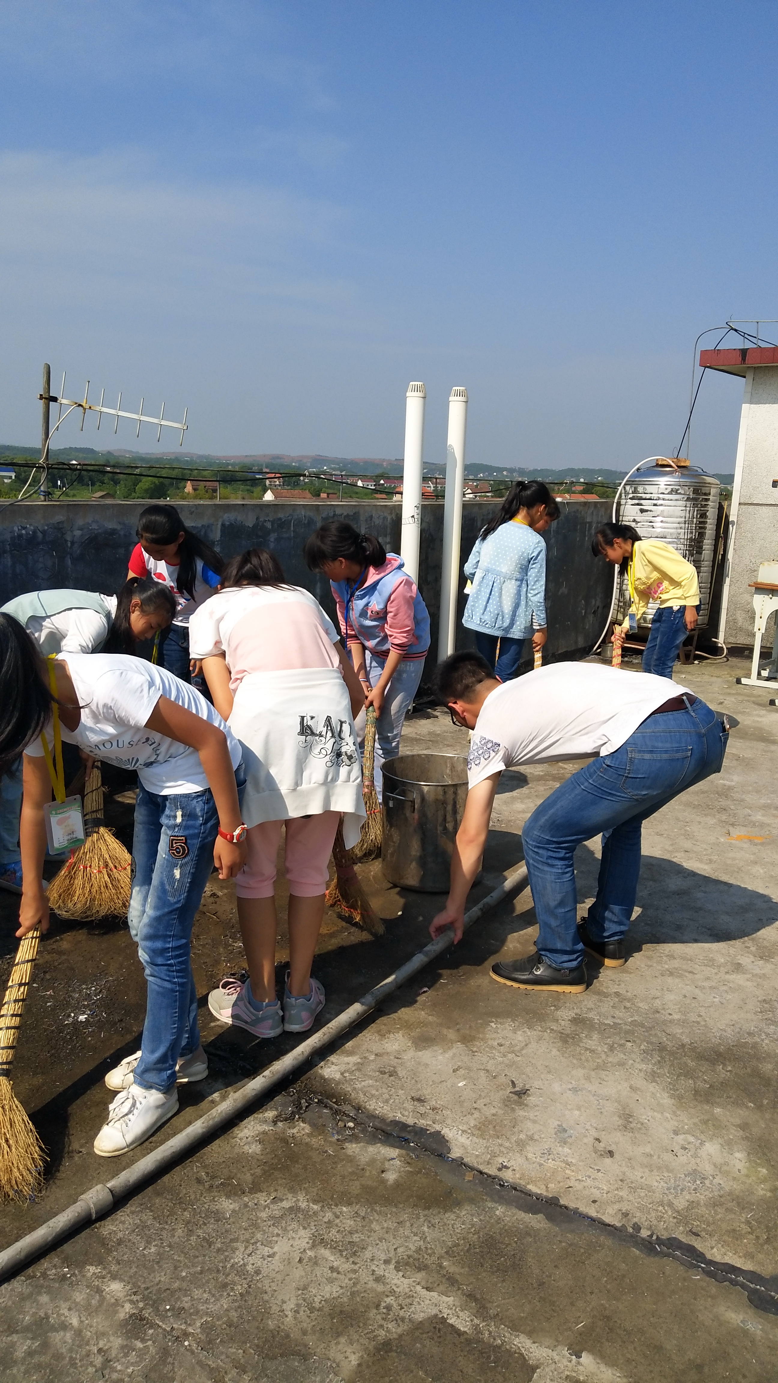 此时,学校的党员教师更是以身作则,不畏脏,不怕苦,认真打扫着学校的天台,不放过任何一个卫生死角。经过大家一个小时的努力,整个校园焕然一新,活动不仅美化了学校环境,提高了同学们的环保意识,也营造了浓厚的绿色学校氛围,更有效地提高了学校环境卫生质量。