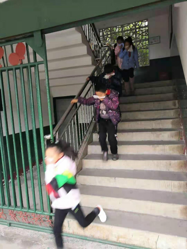 12月9日上午9:00,警报拉响,演练开始。在班主任的组织下各班学生迅速且有条不紊地按照各自逃生路线向安全区域疏散,各层楼梯都有老师从旁指挥引导。学生听从指挥、行动迅捷。全校师生仅用1分29秒的时间就完成整个逃生演练。整个过程做到了快速、安全、有序。