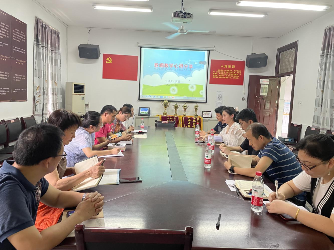 为加快推进新时代农村留守儿童素质教育的发展,促进教育公平惠及边远地区。6月16日下午,茶山小学一行四人在钱校长的带领下来到玄碧塘小学,在会议室,玄碧塘小学党支部书记贺敏作了"歌唱教学心得分享"的主题分享会,和大家一起讨论了目前我们音乐教学上应当思考的几个问题:1、上了六年音乐课,学生到底能唱多少歌?2、课堂上会唱的歌,课后多少人会唱?3、生活中爱唱的歌,老师们教的有多少?两校的音乐专业的老师积极讨论,互相学习,取长补短,气氛热烈,颇有成效。