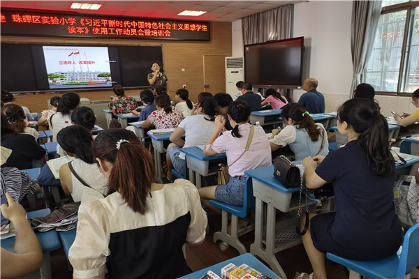 8月31日,珠晖区实验小学在教师新学期的第一次大会上,召开了《习近平新时代中国特色社会主义思想学生读本》教学使用动员会暨培训会。