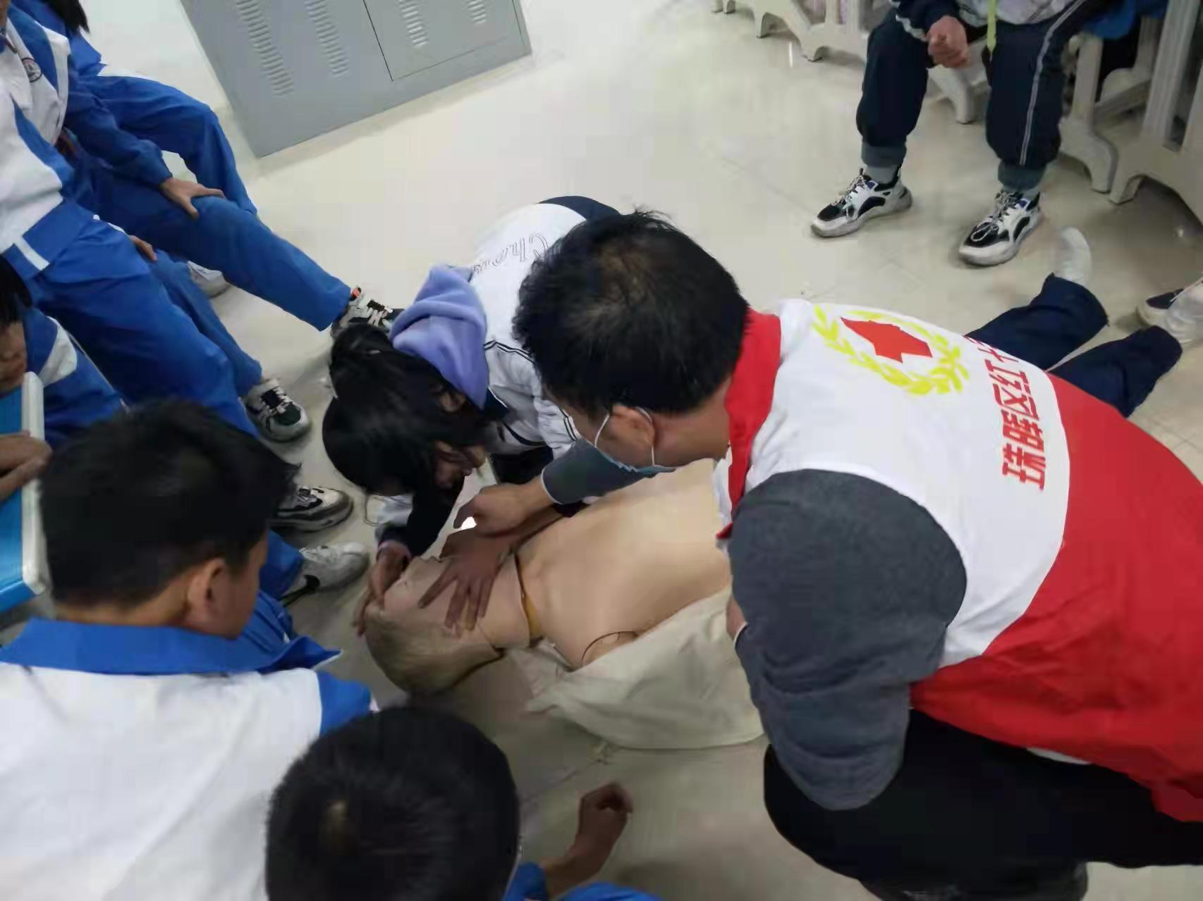此次培训特别邀请了区红十字会有丰富教学和实践经验的应急救护人员为大家授课,培训教师将理论知识和实际救护技巧结合讲解生活中遇到突发状况如何急救,对徒手心肺复苏、溺水紧急救护、止血包扎等内容做了详细的讲解,并通过现场演示、互动演练的形式,师生熟悉和掌握现场应急救护的基本技能。