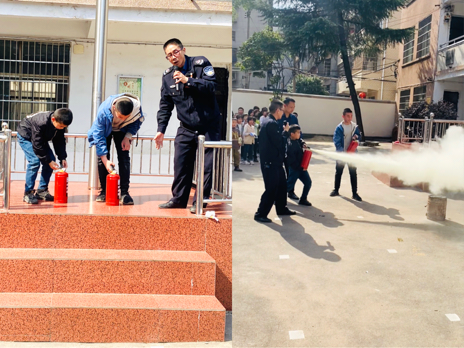 演练之前,肖教官耐心为孩子们讲授了消防安全知识:发生火灾时如何正确的使用毛巾“帕子折三次,八层捂住口鼻”、撤离火灾现场时要注意“身体弯曲快速撤离”、使用灭火器要注意“一提二摇三拔四瞄五压”、火灾发生时怎样快速准确地向消防队报告警情等。随后为大家示范了毛巾的作用及使用方法,演示了干粉灭火器的正确使用方法。讲解过后,邀请师生上台尝试,真正将灭火方法牢记于心。
