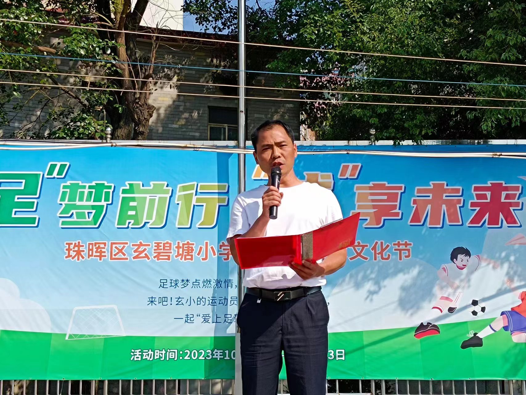 为全面贯彻落实习近平总书记关于足球运动的重要讲话精神和《关于全面加强和改进新时代学校体育工作的意见》精神,有效推动"双减"政策落地落实,深入开展校园足球运动,丰富学生课余足球文化生活,培养学生拼搏进取、团结协作的体育精神,10月10日至10月25日开展了"足"梦前行"球"享未来——珠晖区玄碧塘小学第四届足球文化节活动。经过半个多月的奋力拼搏和激烈角逐圆满落幕,10月25日上午学校隆重举行了闭幕式暨颁奖仪式,闭幕式由办公室主任主持。