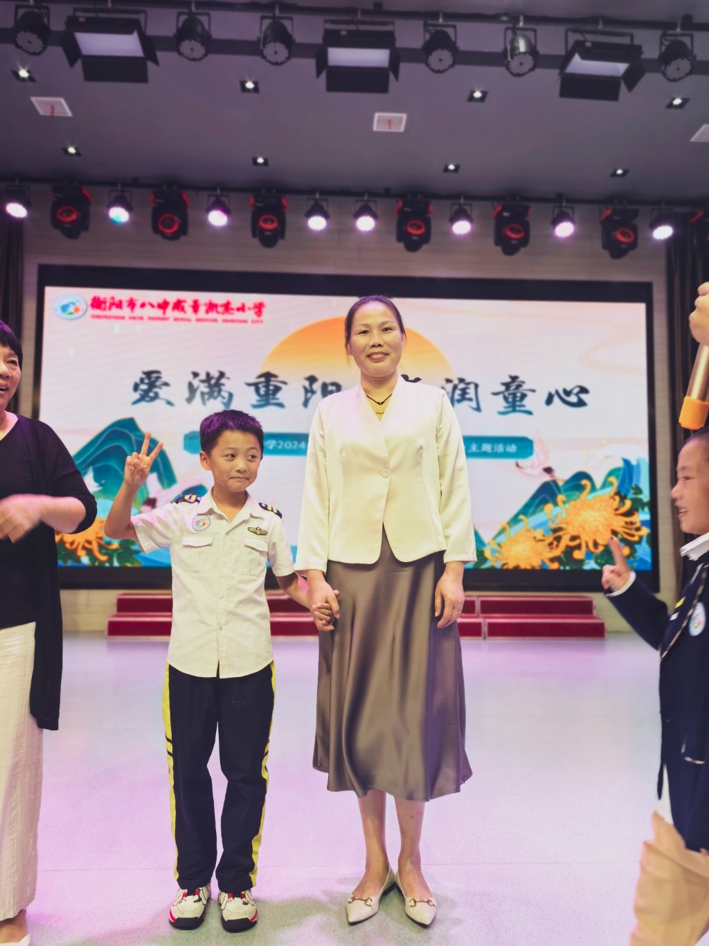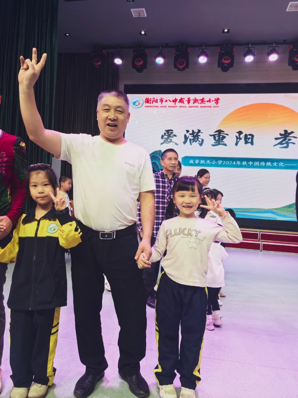 为了弘扬中华民族尊老爱老的传统美德,培养学生的感恩意识,传承中华民族优秀文化。进一步加强未成年人思想道德建设,在重阳节到来之际,凯杰小学开展了“爱满重阳 孝润童心”为主题的重阳节活动。 凯杰小学教师们精心布置场地,摆放着水果点心、整齐的桌椅,迎接老人们的到来。 由张家屹,左安彤,蒋穆圯,张艺馨,邓奕臣担任主持人 这是个特殊的日子,这是个温馨的时刻,它标志着岁月的积淀,见证了时间的馈赠。为体现我们对长辈们无限的感激与崇高的敬意,凯杰学子为爷爷奶奶们献上了精彩的节目,在一个个小惊喜中感受温暖。 77班表演《童心向党》 57班表演《飞夺泸定桥》 这是个特殊的日子,这是个温馨的时刻,它标志着岁月的积淀,见证了时间的馈赠。为体现我们对长辈们无限的感激与崇高的敬意,凯杰学子为爷爷奶奶们献上了精彩的节目,在一个个小惊喜中感受温暖。 精彩的节目,让长辈们纷纷拿出手机记录下快乐时光。 品菊花茶,陪伴长辈 重阳节正值菊花盛开的季节,菊花象征着长寿和坚韧。喝菊花茶成为了成为了一种重要的习俗。同学们不仅为长辈们敬茶还为他们捶背捏肩,和长辈们一起创造属于他们的幸福时光,让老人们感受到浓浓的亲情与温暖。同时,也让孩子们学会了感恩,懂得如何关心、照顾他人。 忆往昔,峥嵘岁月稠;抬望眼,桃李满芬芳。爷爷奶奶们欢聚一堂,畅聊生活趣事,共同回忆当年默默奉献的岁月,祖孙们同时走上舞台,进行了年代走秀,现场气氛热烈而温馨。 在充满活力的游戏区域,祖孙们尽情享受着滚可乐这样有趣创意的童年闯关游戏。奖品的设计也非常实用,让大家感受到获奖的快乐。相信这些宝贵的经历将成为他们难忘的回忆。 当一碗碗热气腾腾的长寿面端上桌时,长辈们的脸上露出了幸福的笑容。面条细长,寓意着长寿安康,每一口都饱含着师生们对老人们的深深祝福。 岁岁重阳秋风劲,孝老敬老正当时!相信“百善孝为先”的中华民族传统美德定能在凯杰小学孩子们的心底生根开花,我校倡导全社会树立敬祖、敬老、孝道、感恩的风气,帮助学生养成敬老、助老的良好价值观。 编辑|孙 靓 一审|谢利芳 二审|肖文凯 三审|陈晓红