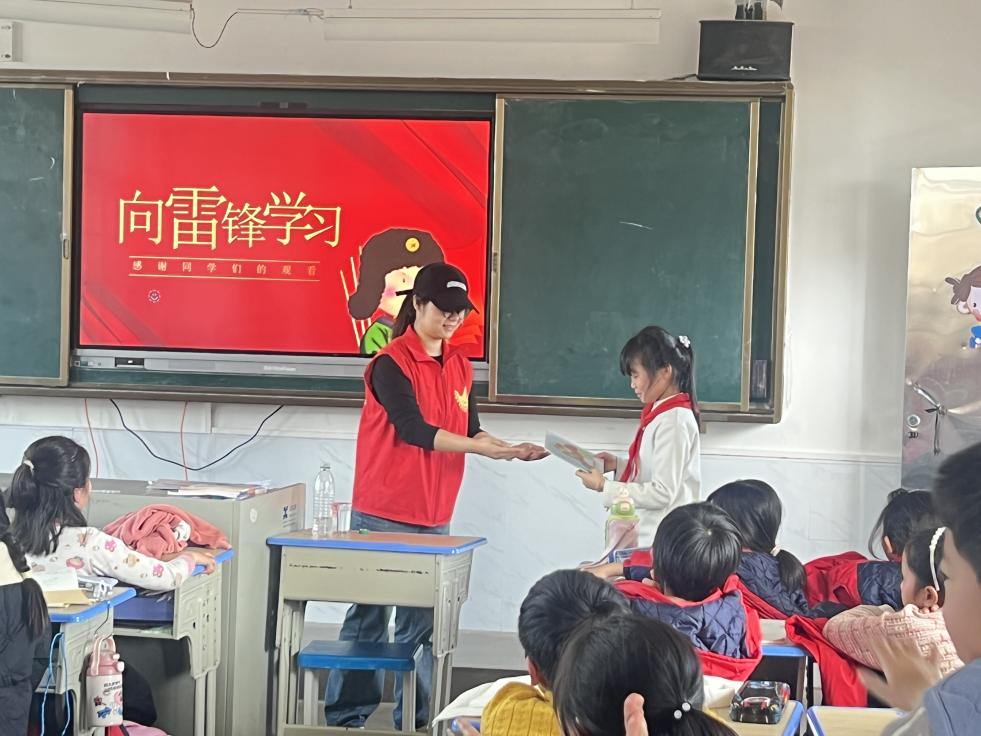 3月3日湖南工学院大学生青年志愿者走进学校,带着孩子们重温雷锋故事,感悟雷锋精神,围绕环境保护开展宣讲和志愿服务活动。在学校多媒体教室,志愿者通过PPT讲解、发放宣传手册等方式宣讲雷锋精神,引领孩子们深入思考雷锋精神的时代内涵。随后,志愿者围绕水资源保护开展环保宣讲,结合动画视频与知识问答,讲解垃圾分类、水资源利用等环保理念,号召孩子们以垃圾清捡、节水护水、孝老爱亲等行动将雷锋精神内化于心、外见于行。