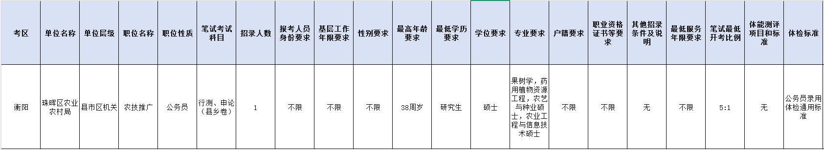 其中珠晖区农业农村局招录1人