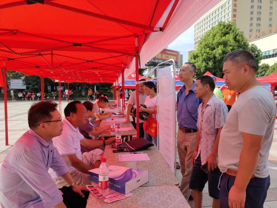 7月6日上午,由珠晖区人社局主办,珠晖区就业服务中心联合区人力资源服务中心承办的点亮万家灯火暨就业帮扶现场招聘会在火车站广场举行。活动现场共发放宣传资料1000份,共有珠晖区大学生创新创业孵化基地、衡阳湘大骆驼饲料有限公司、衡阳现代力丰农业发展有限公司等33家企业前来招聘,提供了普工、焊工、文秘、会计、收银员、机械工程师等各类就业岗位多达200个,吸引了500人左右前来现场求职。