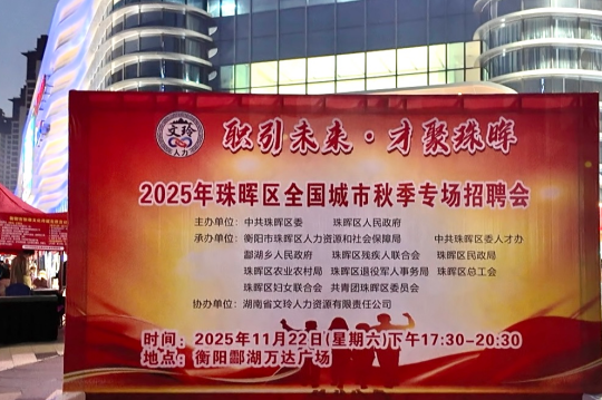 区人社局表示,下一步将持续聚焦企业用工和劳动者就业需求,常态化开展各类招聘活动,深化校企合作、政企对接,完善就业服务体系,为稳定就业局势、推动珠晖经济高质量发展提供有力支撑。