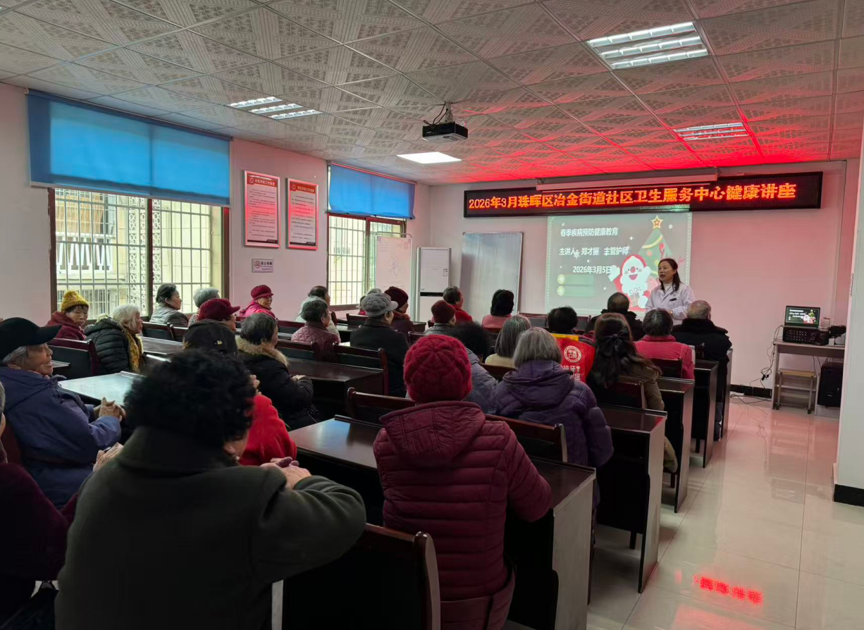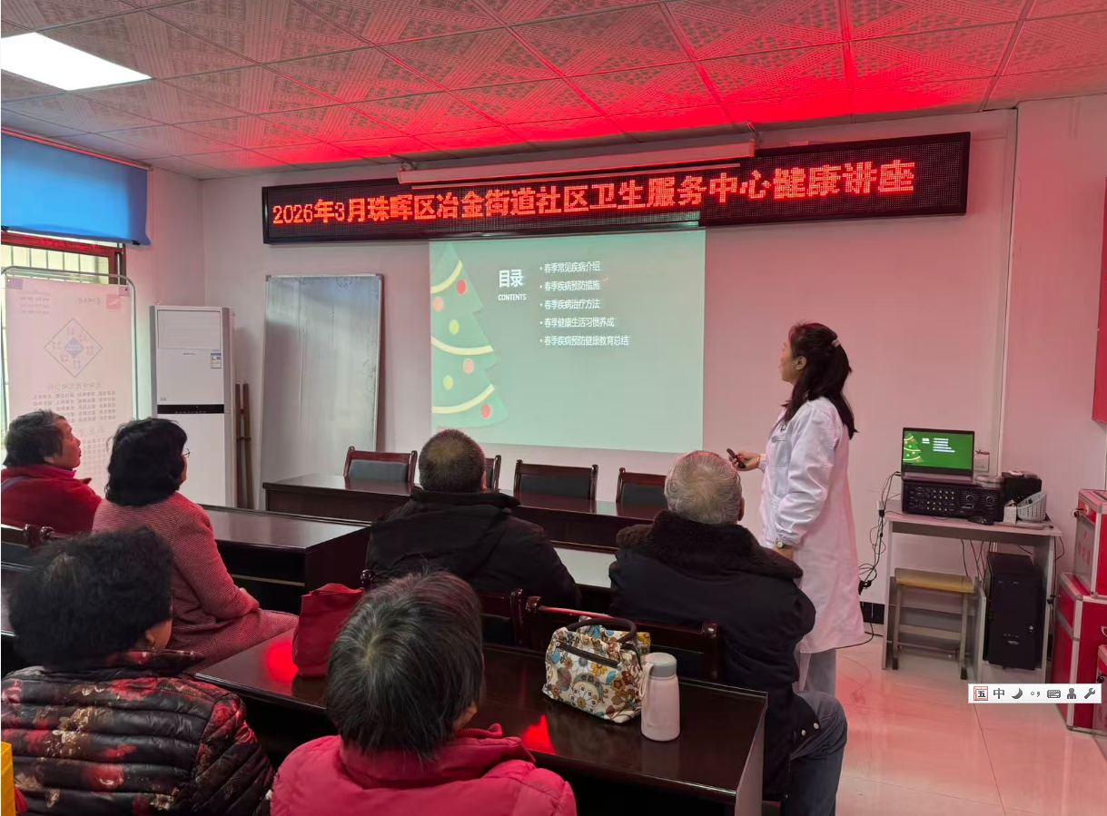 为普及春季健康知识,增强居民防病意识,近日,珠晖区冶金街道社区卫生服务中心举办"春季中医养生与疾病预防"专题讲座,吸引了40余名居民参与。