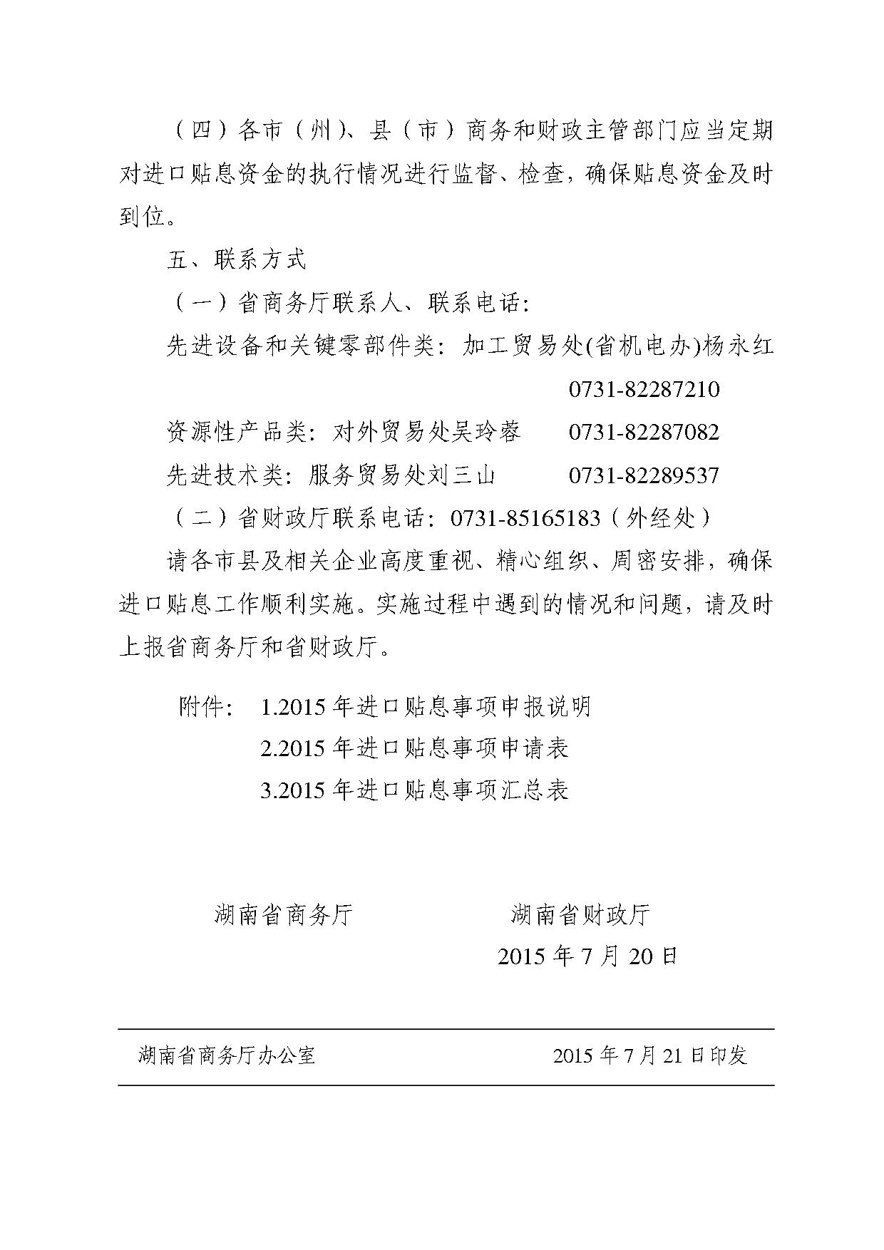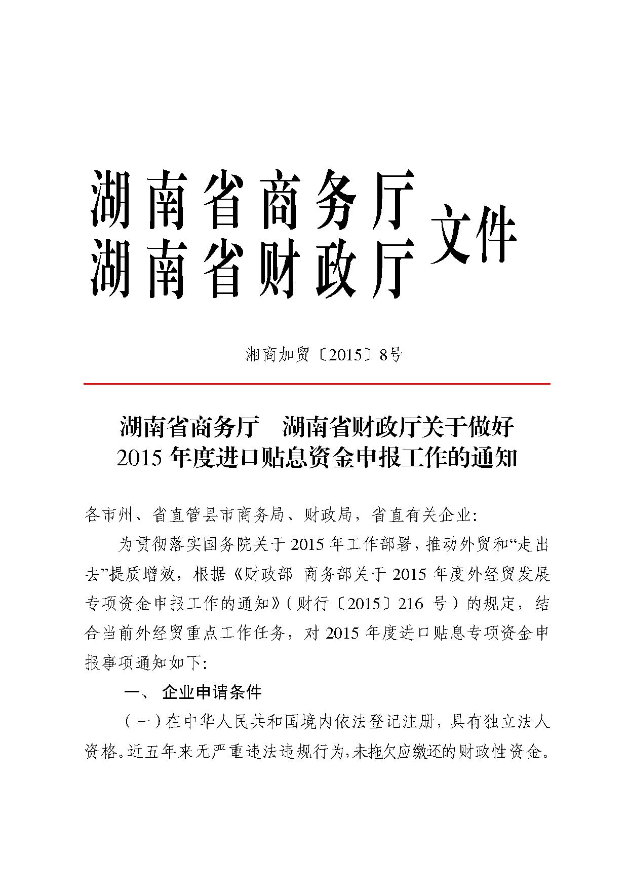 湖南省商务厅 湖南省财政厅关于做好2015年度进口贴息资金申报工作的通知