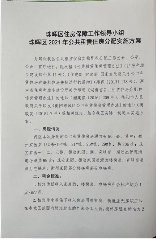 珠晖区住房保障工作领导小组关于印发《珠晖区2021年公共租赁住房分配实施方案》的通知