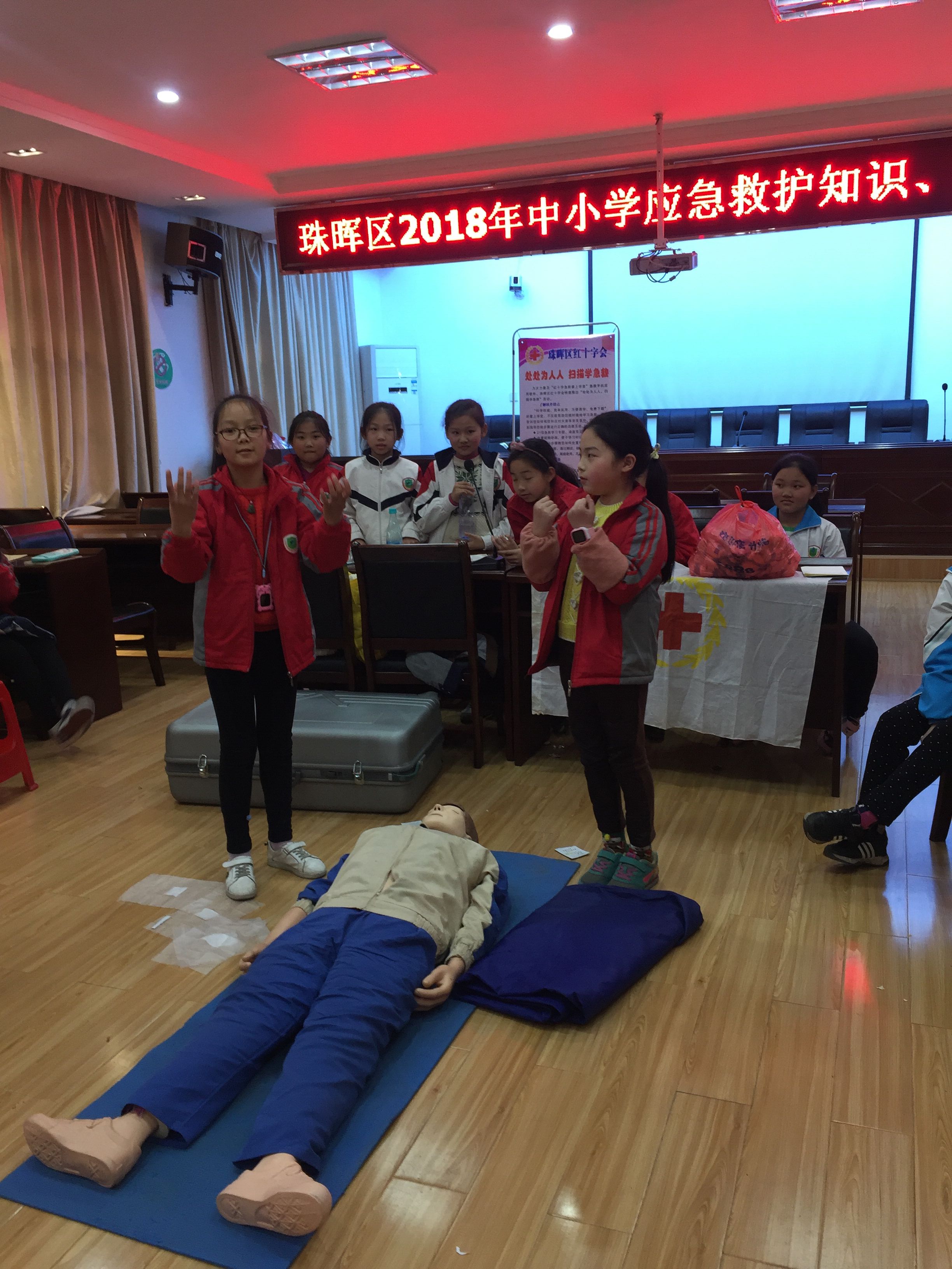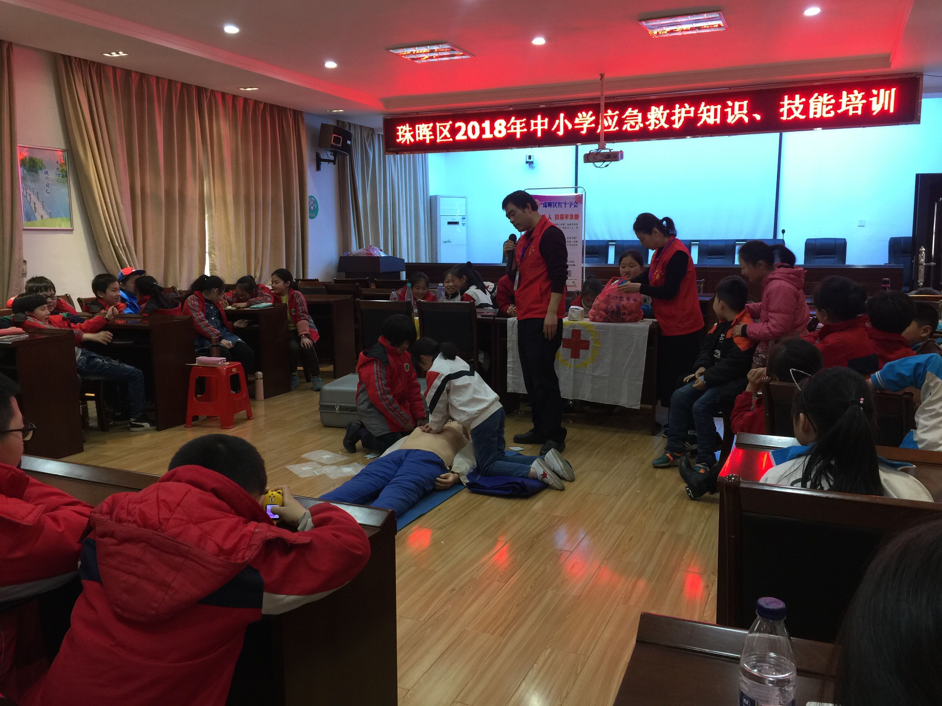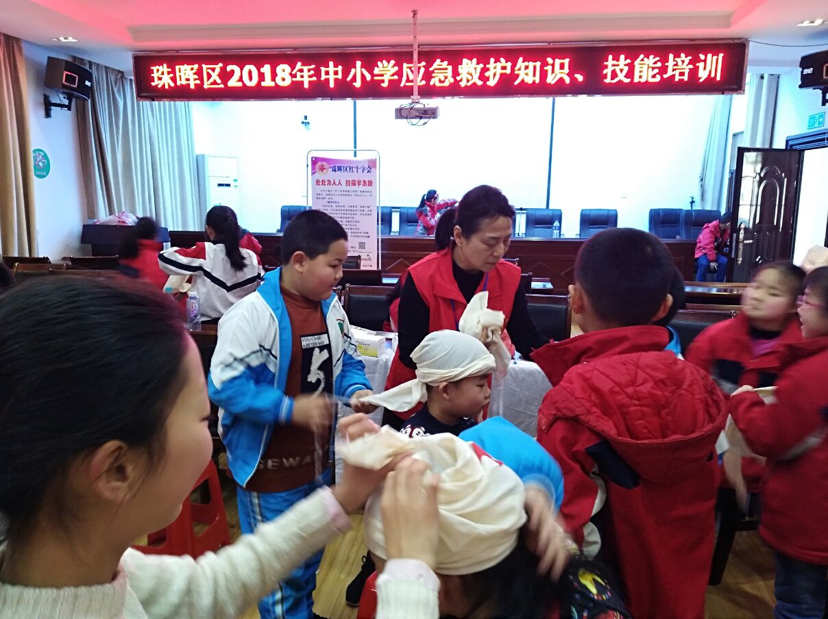 为建设安全校园,提高中小学生的安全意识,切实保障广大中小学生的生命安全,帮助中小学生掌握基本的自救互救知识和技能,区红十字会与区教育文化体育局联合举办2018年全区中小学生应急救护知识培训。