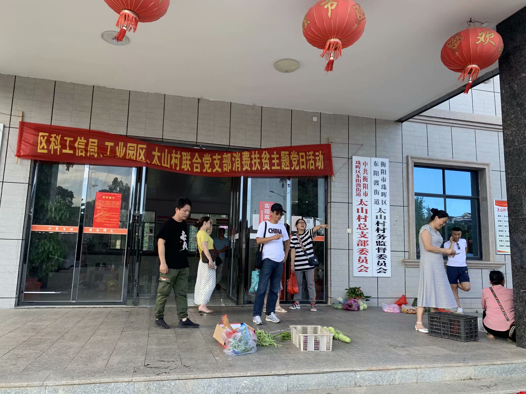 为响应"消费扶贫"号召,6月16日下午,区科工信局、工业园区、太山村联合党支部在太山村村部开展消费扶贫主题党日活动,区人民政府副区长罗宏俊带领党员干部"以购代捐"、"以买代帮",促进脱贫增收。